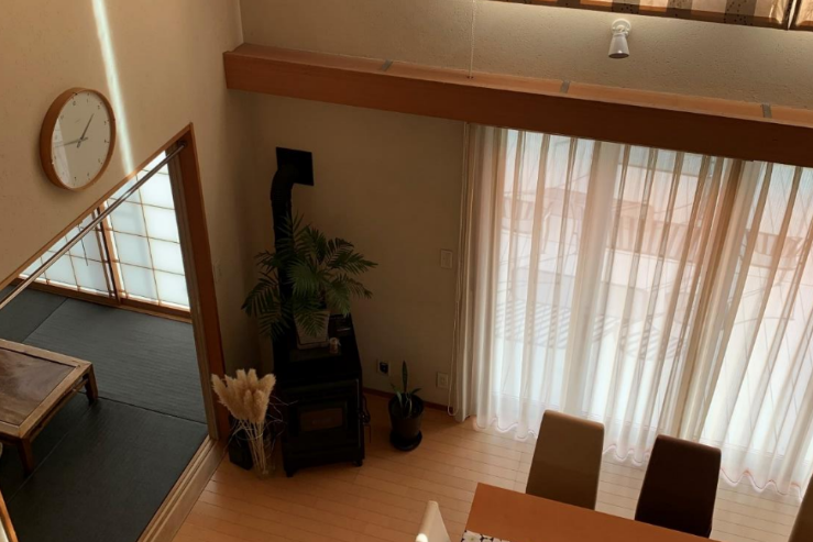 リビングにはペレットストーブを設置。自然とストーブの周りに人が集まるので、温かいだけでなく、家族や仲間を繋げる役割を果たしてくれています。