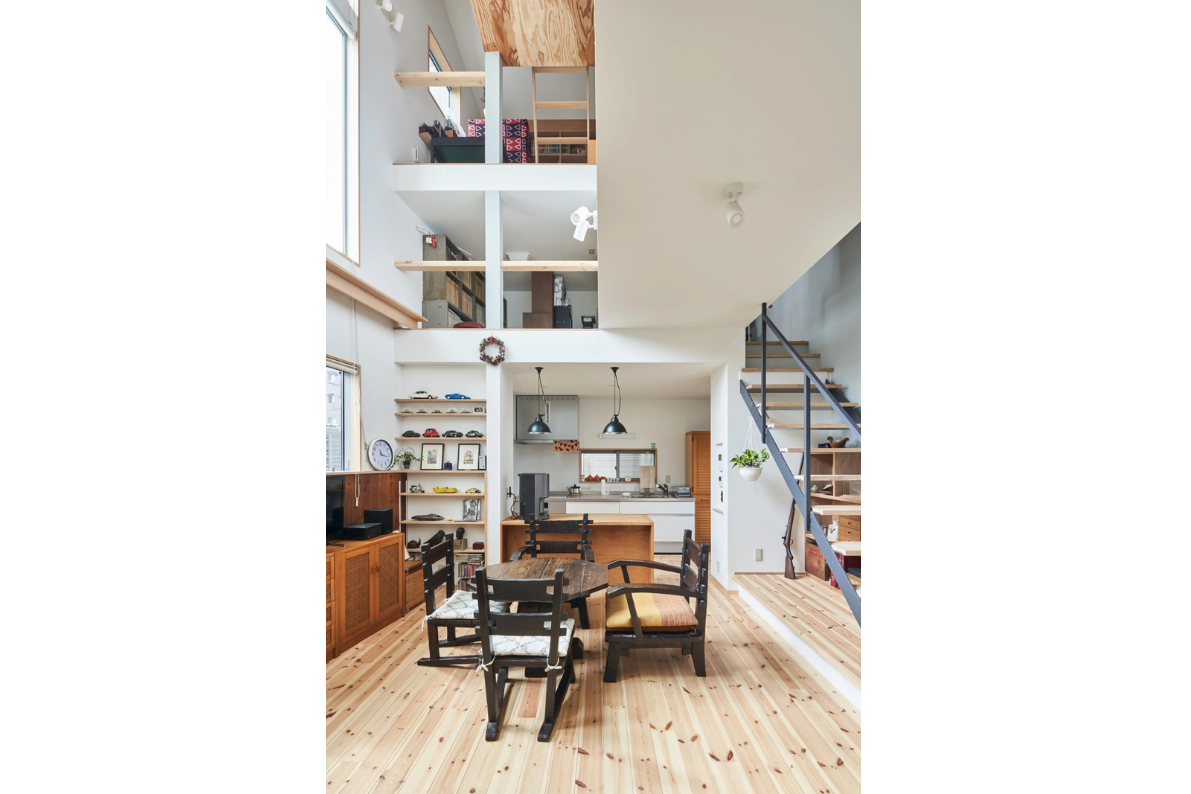 本来なら八畳の部屋をひとつ増やすことも考えられますが、あえて一部屋分の面積を削り余白を庭としたことで、庭がハブとなり、住まい全体がつながり、風や光が行き渡ります。サッシをしまい込めば、リビングから和室までが庭を介してひとつの大きな空間に。「何畳」とは数えられないノンスケールに開放感が生まれます。