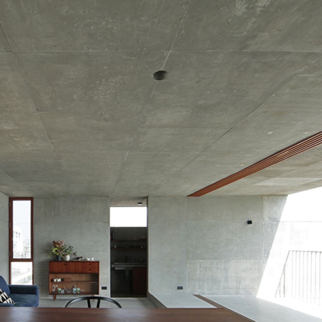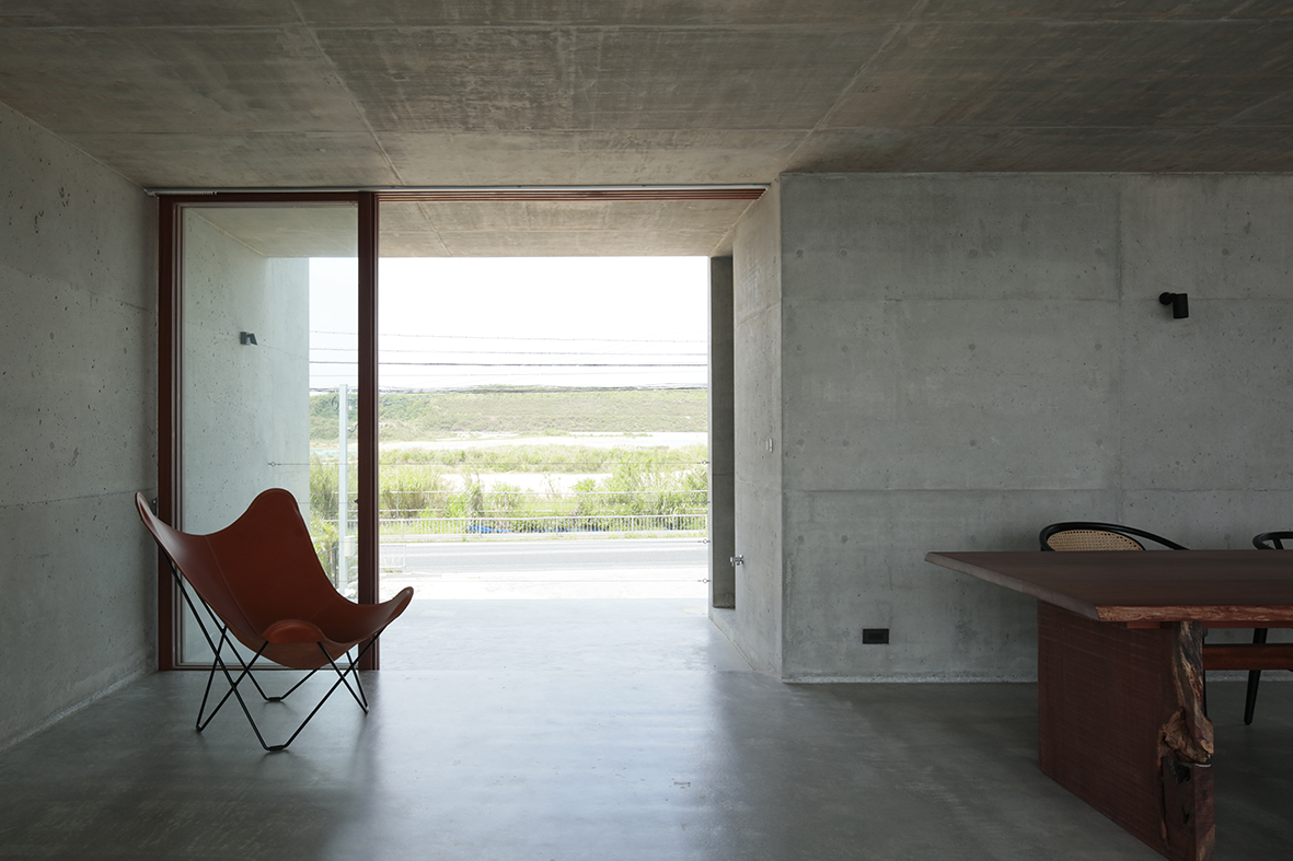 日常では基本的に窓を開放し、南から北へと抜ける風をそのまま暮らしに取り込みます。冬季は一方を閉じて室内環境を調整。自然の動きに合わせた柔軟な使い方が可能です。外観はRC造の無駄のない造形でまとめつつ、木製建具や無垢材を用いることで、内部には柔らかな質感と温もりを添えています。