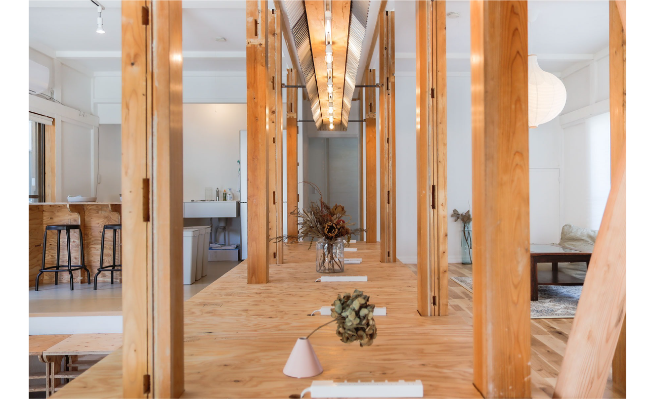 テーブルやカウンターなどを一から造作することは手間もコストも掛かりますが、その場所でしか生まれない価値を育むことに繋がります。