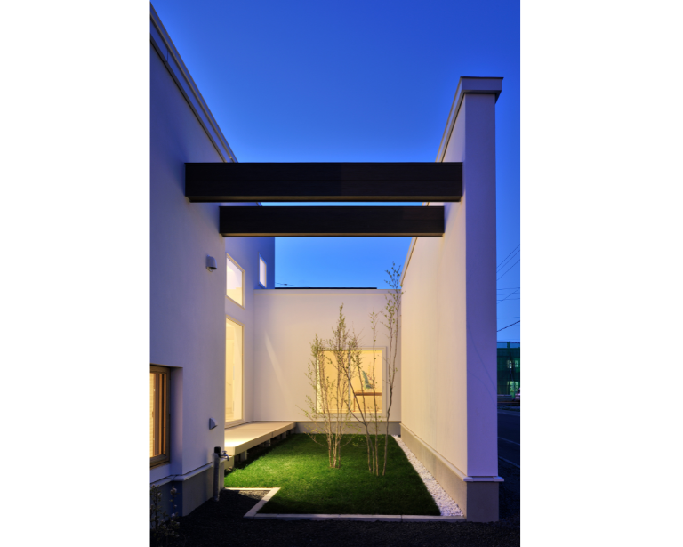敷地は角地という立地。道路に開かれた場所であるからこそ、閉鎖的になりすぎない程度のプライベート感が求められました。