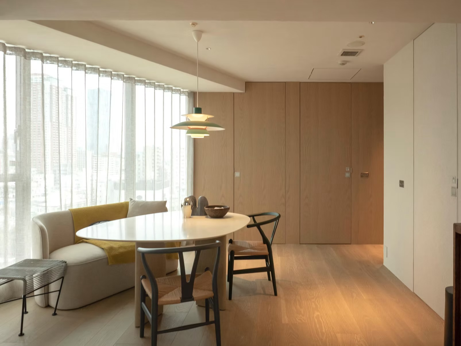 既存建物の特性を見極めた上で機能と美観の両立を図り、住まい手が自由に暮らしを整えられる柔軟性を残すデザインに。構造を活かしつつ、日々の生活に心地よい距離感と開放感をもたらす、洗練された都市の住まいが生まれました。