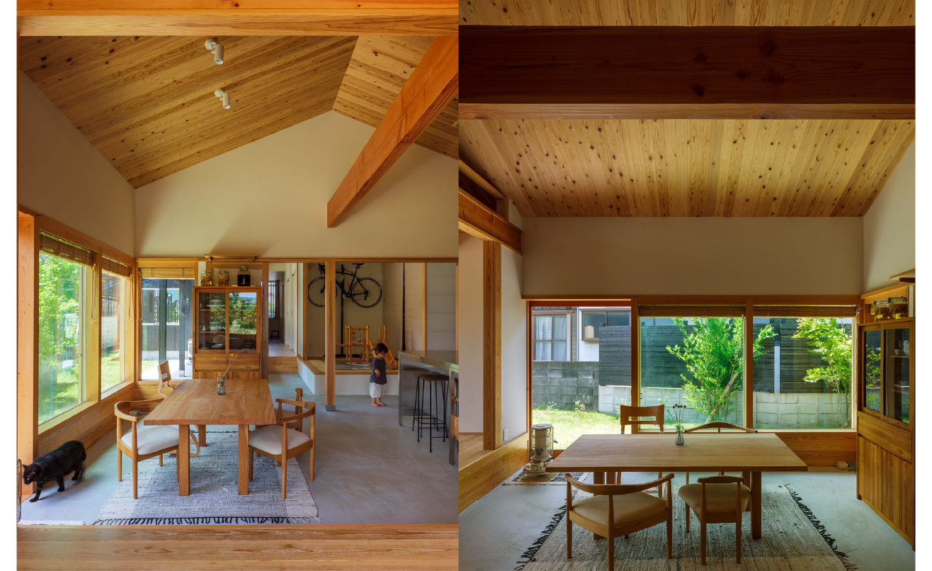 そこで細長い敷地形状に沿って内部と庭・畑が自然に繋がるように計画。