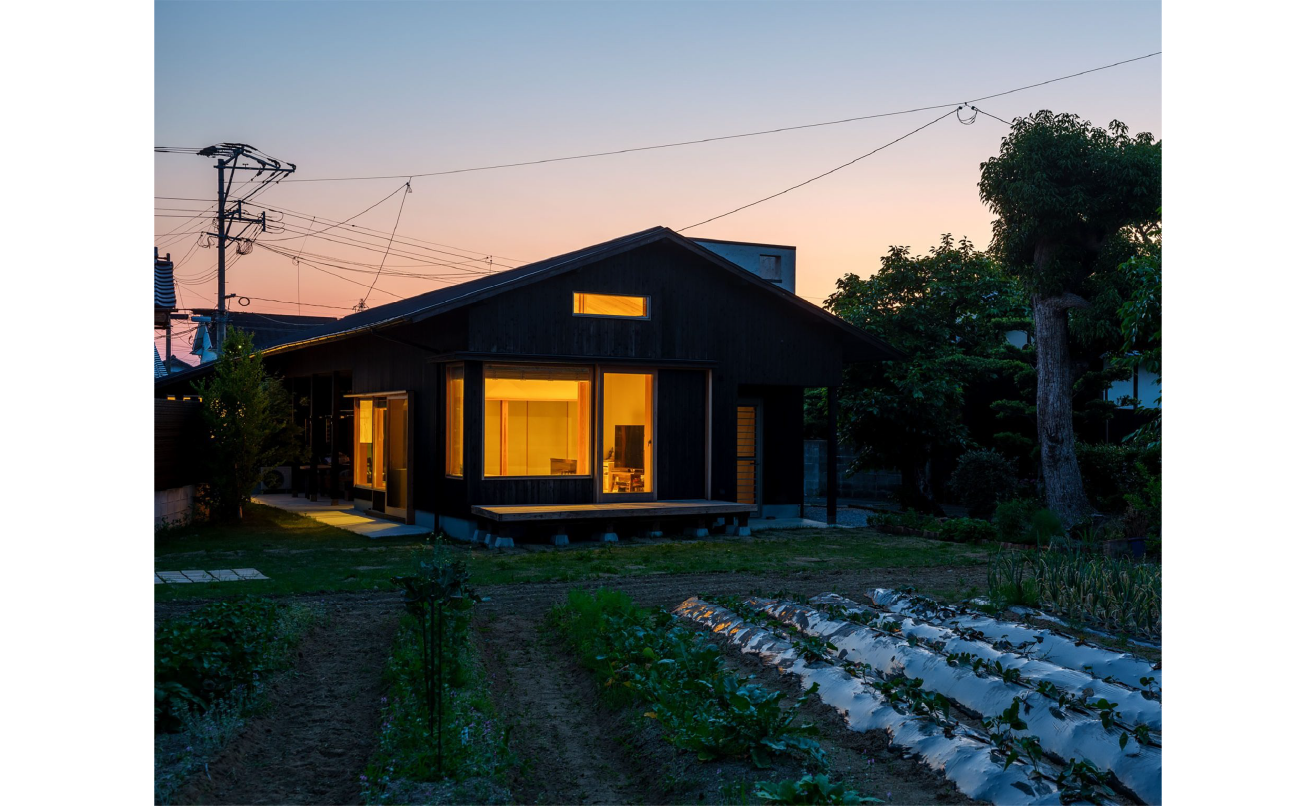 畑で採れた野菜を食卓に運び、緑に包まれた玄関を抜け、自然と共に日常を編む。農と暮らしをひとつに結び、家族の時間とともに味わいを深めていく“現代の民家”と呼ぶにふさわしい住まいです。