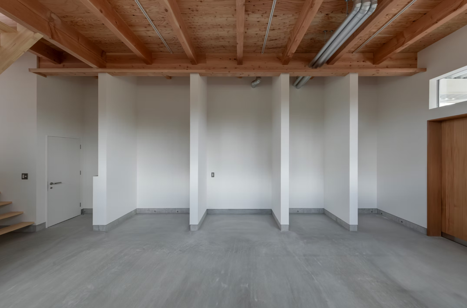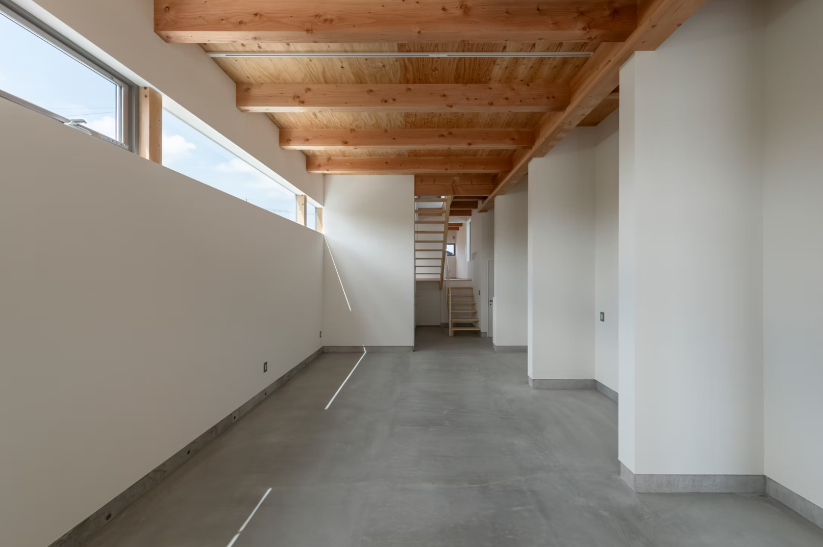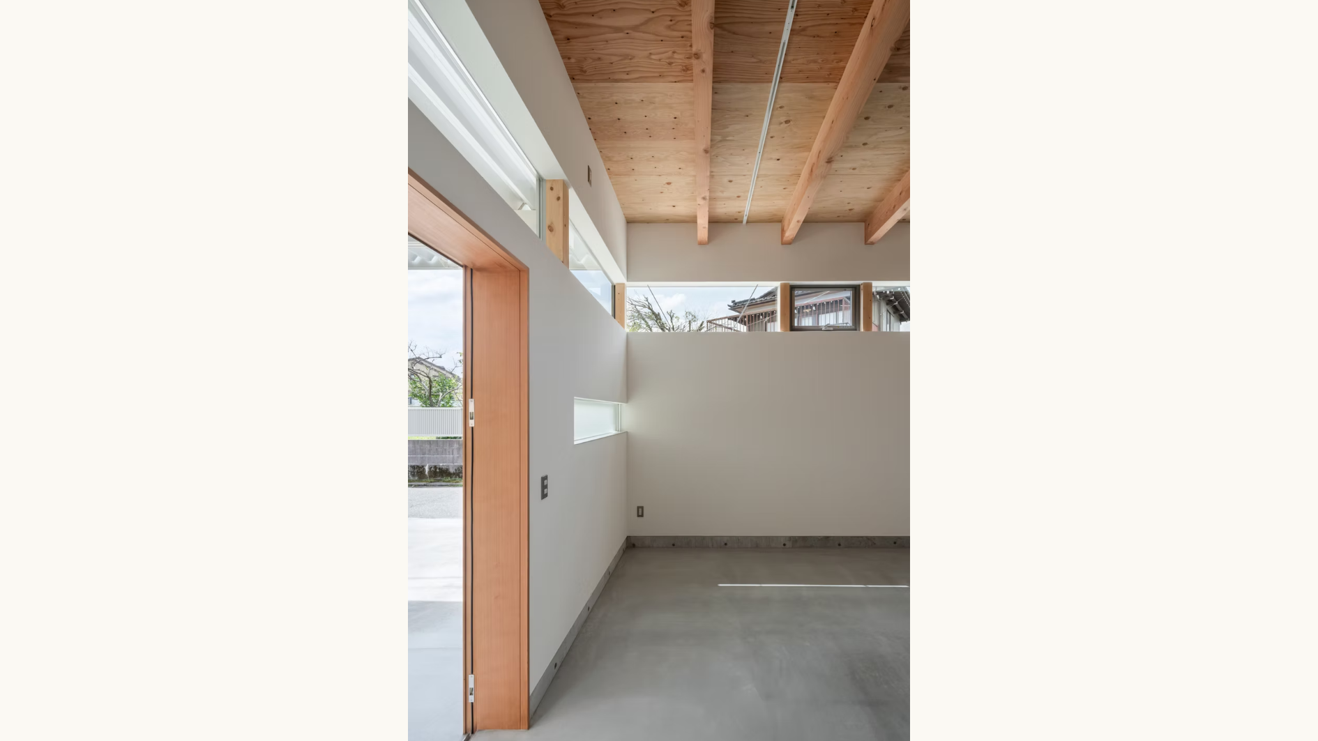 窓はハイサイドライトにすることで、外からの視線を気にせず、差し込む自然光の中で仕事ができる心地よい環境を生み出しています。