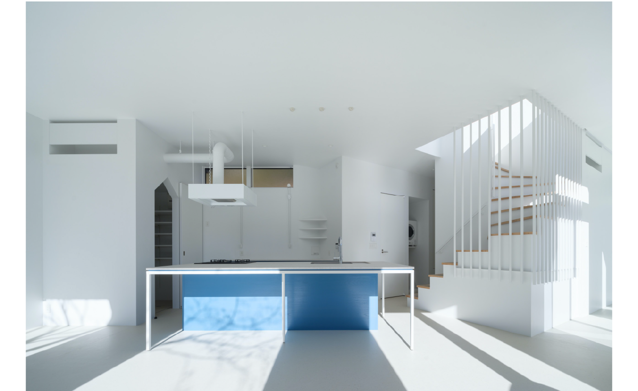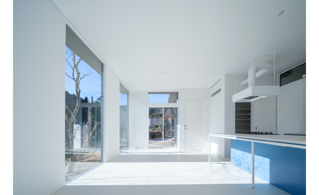 西日の影響を受けにくい敷地条件を生かし、カーテンを設けず透明感のある空間を実現しています。