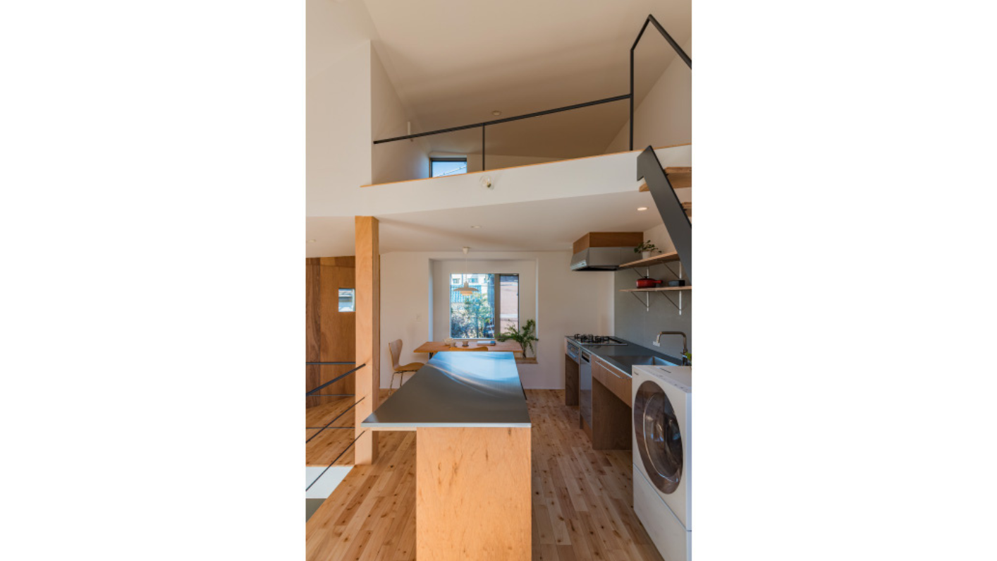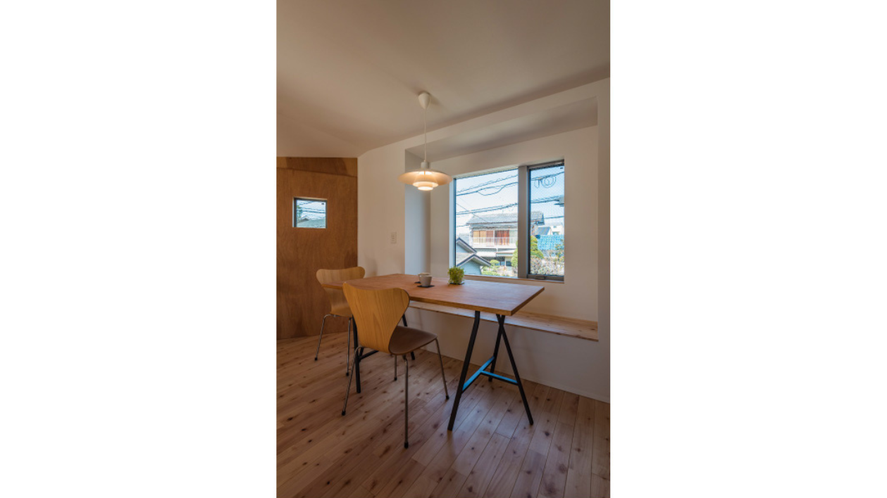 床面積を少しでも広く感じられるよう、ダイニング側の窓は奥行きを持たせた出窓とし、ベンチとしても活用できるようにしています。また、ロフトを設けることで、限られた空間の中にも複数の居場所を生み出しました。