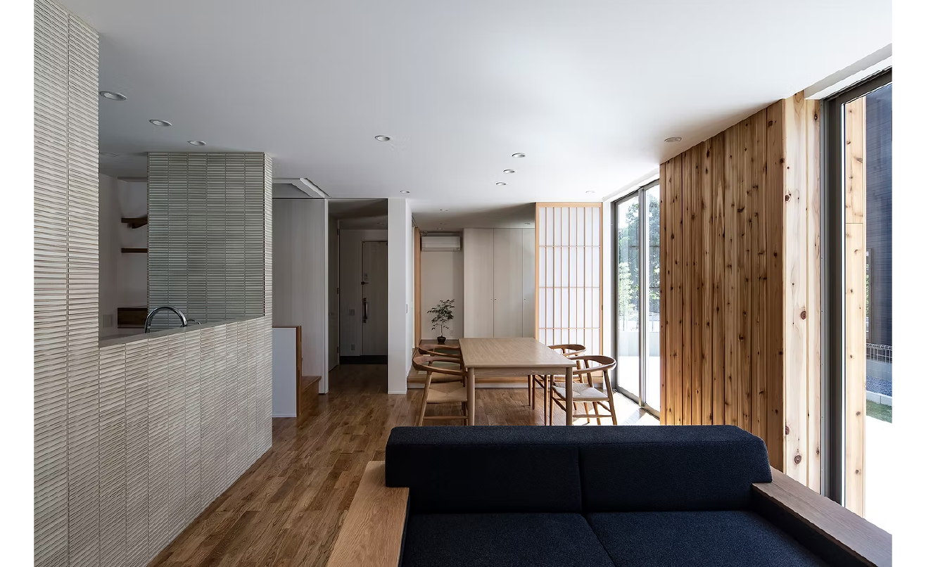 サイディングやタイルなど素材の選定にも、コストと構成の両立が意識されています。近隣からは美術館が建つのかと評されるほど端正ですが、実際は効率を極めた住宅だといいます。