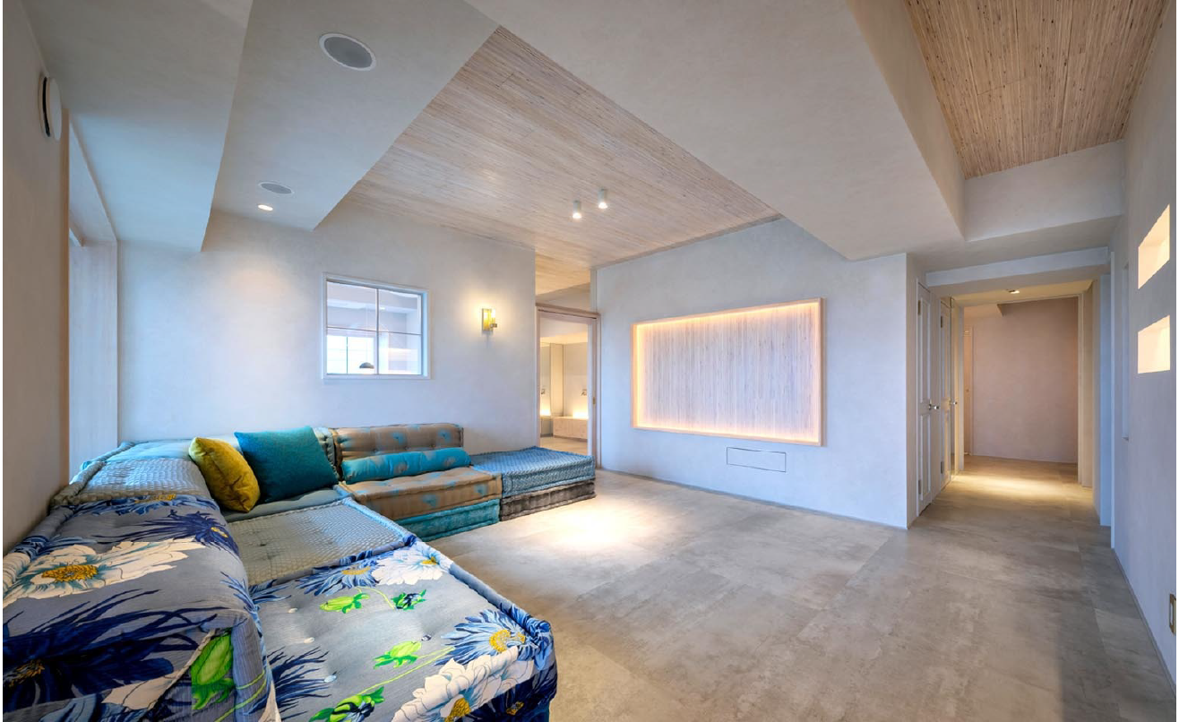 光のグラデーションと回遊する動線がつくるこの住まいは、機能を超えて“歩くことそのものが心地よい”空間体験へと昇華されています。