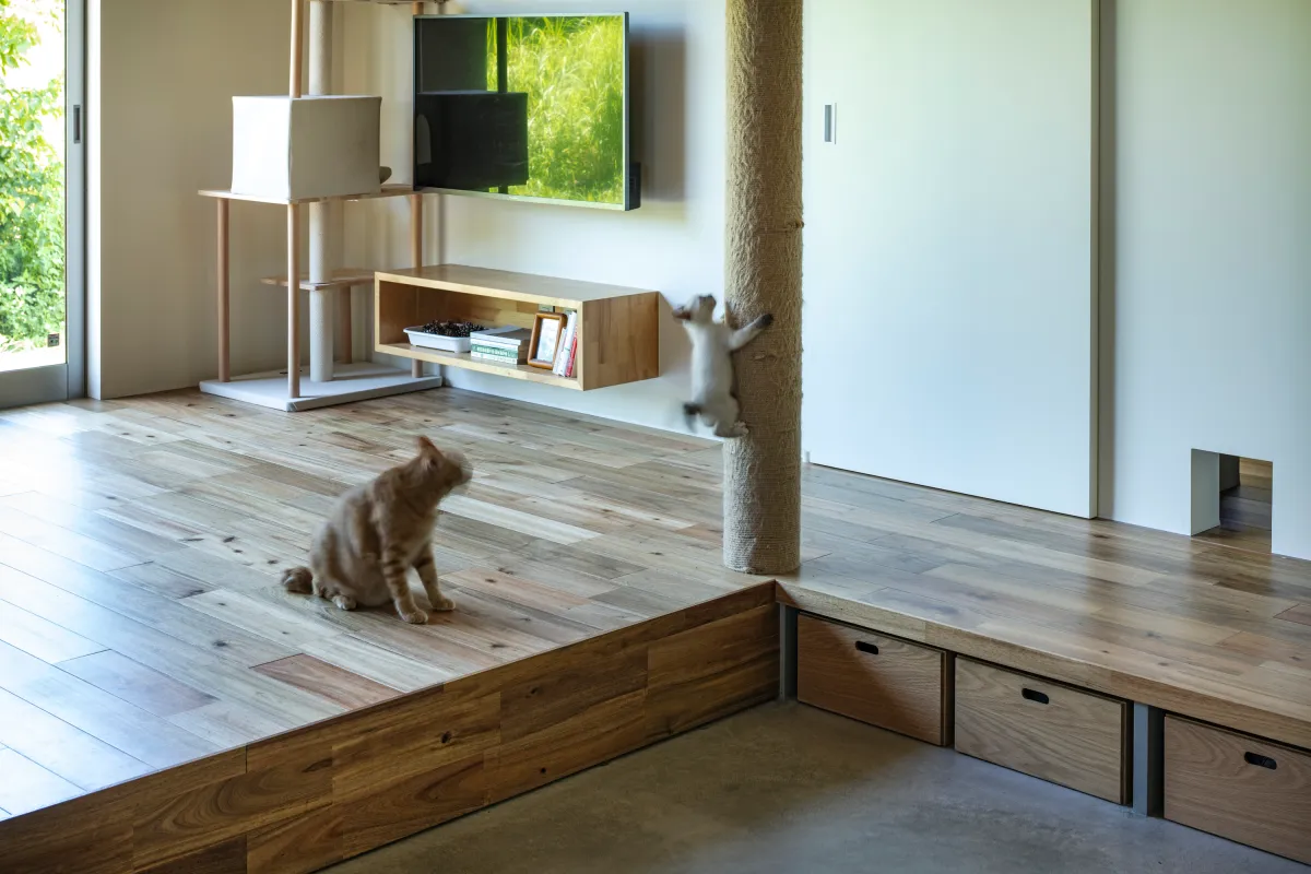 内装は、猫が壁をひっかいても補修しやすいよう塗装仕上げとしました。長く使えることを優先したことで、長期的に見ればコストダウンにもつながります。