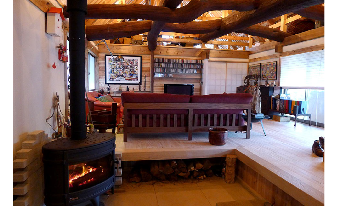 東側の光はリビングの奥まで差し込み、朝日と共に目覚める毎日を導いてくれます。冬は薪ストーブだけで家が芯から温まり、厚く入れた断熱が熱をやさしく保ちます。