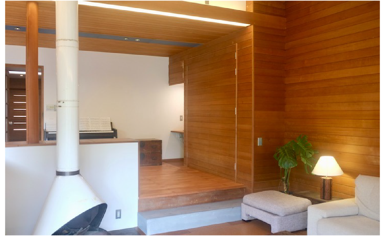 古くなったコルク床はフローリングへ更新。断熱の全面改修が難しいため、既存の床暖房にエネファームを接続して快適性を補完しています。石油からガスへ変更することで環境負荷を軽減する計画です。そして当時のままの薪ストーブはこの家の時間の層を象徴する存在として残っています。