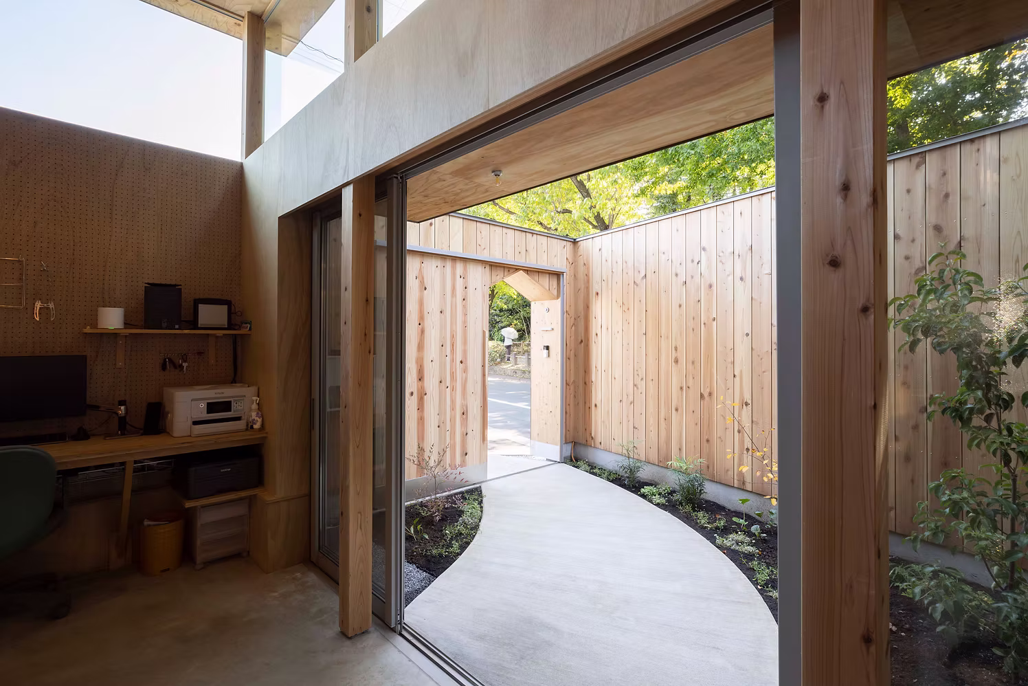 奥様の仕事には商品のストックスペースが、ご主人の趣味にはバイクを室内に置くスペースが必要とされており、それぞれのライフスタイルに寄り添った空間づくりが求められました。