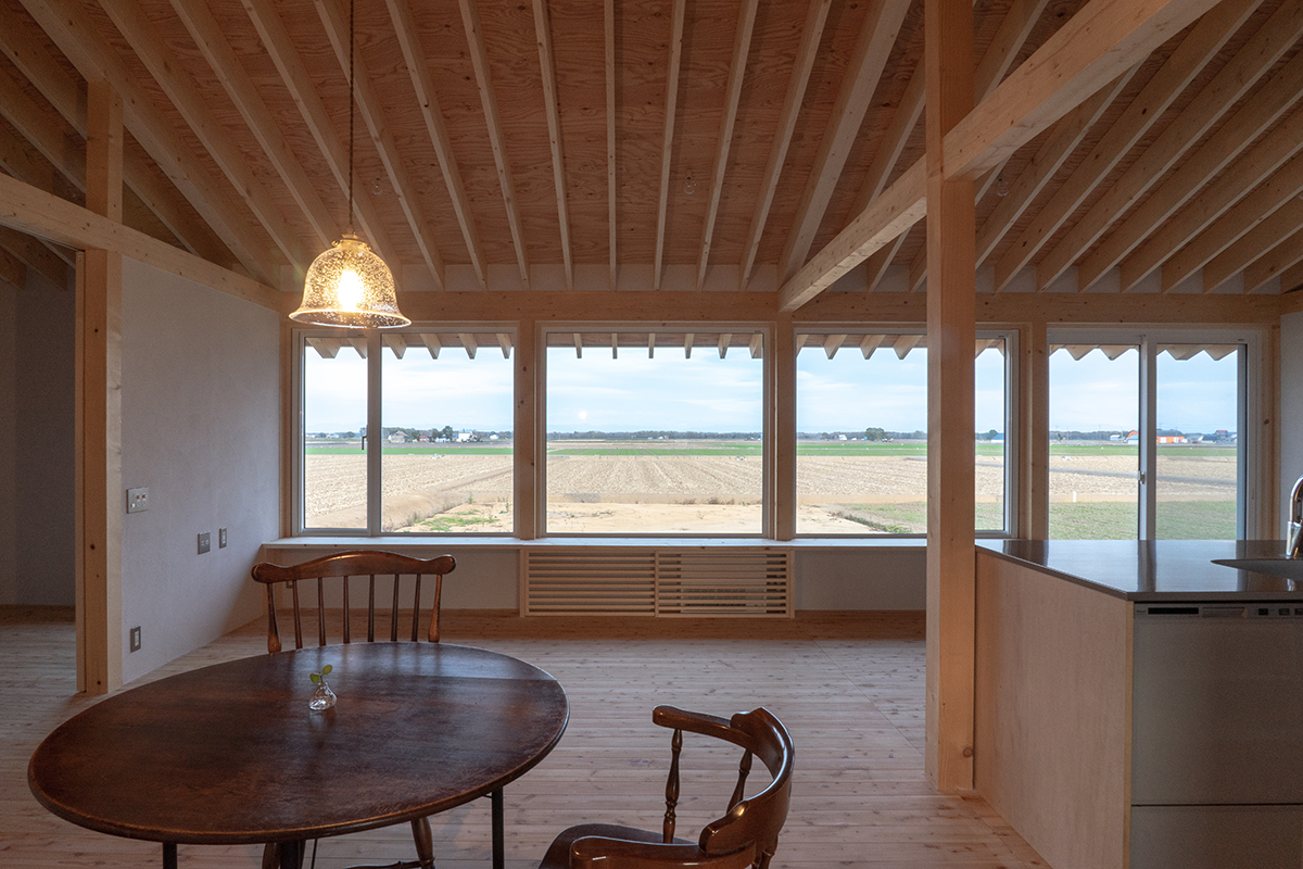 冷暖房などの設備は生活に必要なものですがあまり目立つと空間の雰囲気を損ねてしまいます。部屋になじむように設計したのがこの写真の『新篠津西の家』です。