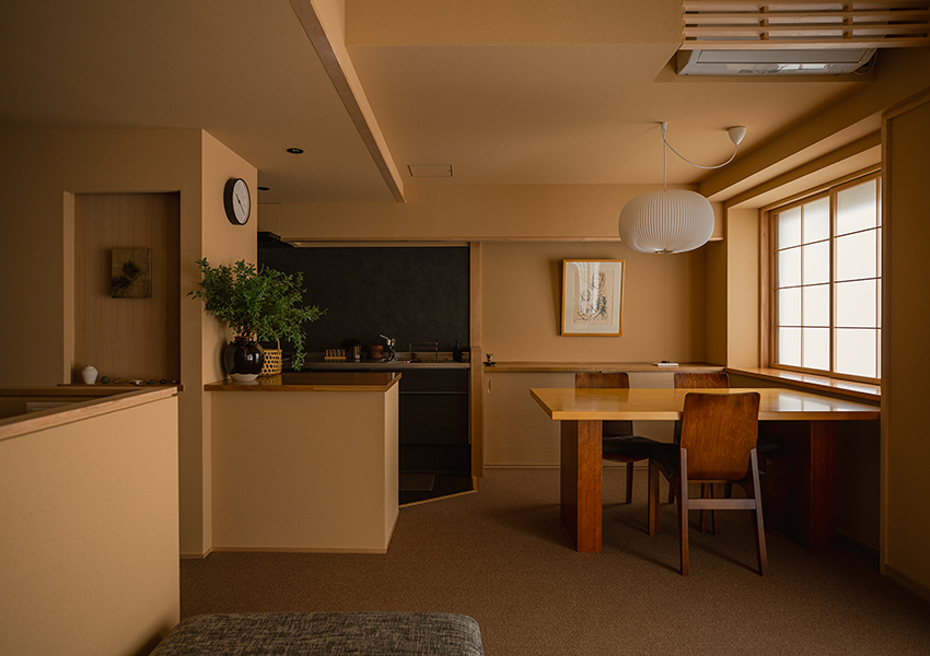 そんな和の世界観を日々の生活に取り込みたいという思いを叶えるため、このリノベーションでは、素材や線の扱い、光の取り込み方を丁寧にデザインすることで、「懐かしさ」と「洗練された現代的」な2つの和の雰囲気が融合する空間を目指しました。