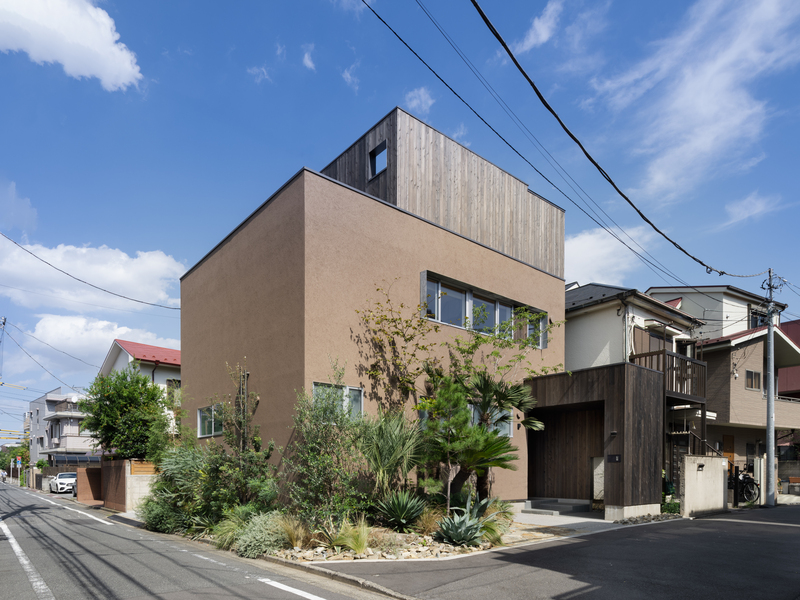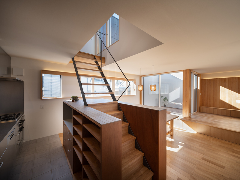 都市部の住宅地に建つ住まいでは、外へ開放したい思いはありながらも、周囲の視線が気になり、なかなか大胆に開くことはできません。そんな都市環境の中でも、できる限り開く住まいになるよう工夫を重ねた住まいです。