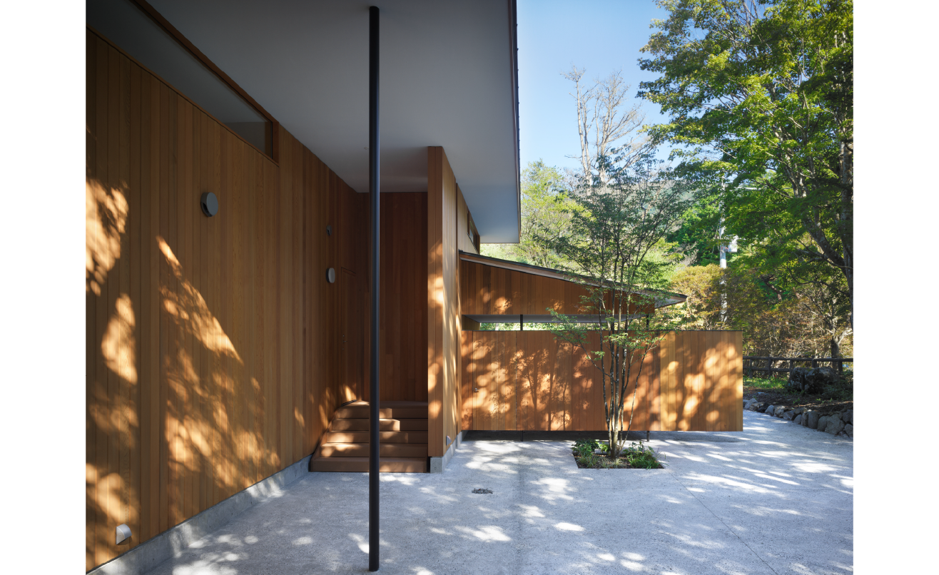 箱根・仙石原の自然環境の中で、この別荘は「安心して長く滞在できること」を大きな前提として計画されました。お施主さんは将来を見据え、生活のすべてがワンフロアで完結する平屋建てを希望。段差や上下移動をなくし、身体への負担を極力抑えた構成が選ばれています。