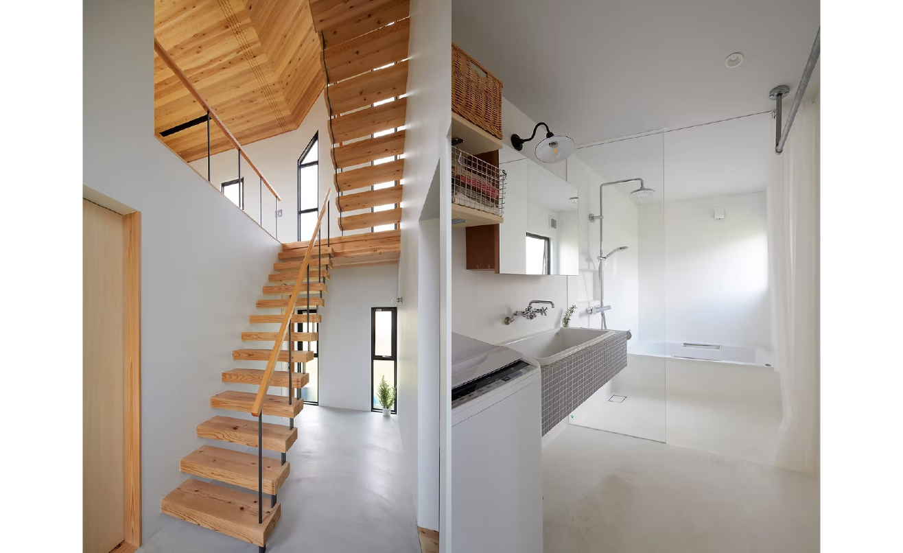 住まいの内部構成はスキップフロアによって整理されていて、動線自体はとてもシンプルです。洗濯や収納といった家事機能は1階にまとめられ、日常の作業は上下移動を最小限に抑えて完結します。