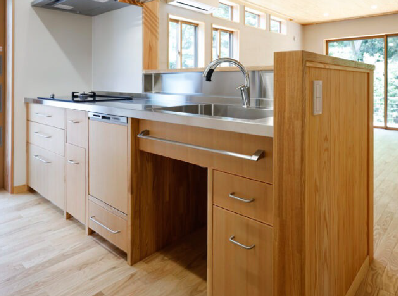 キッチンや収納もすべて職人の手による造り付け。既製品に頼らず、使い勝手や寸法を暮らしに合わせて一つひとつ形にしています。お施主さんが大工さんと直接やり取りしながら進めた家づくりは、空間に対する納得感を高めるプロセスでもありました。
