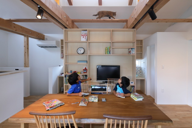 リビングダイニングの一角にあることで、子どもたちが学習や読書をするハードルが下がり、机に向かうスピードがとても速くなったそうです。