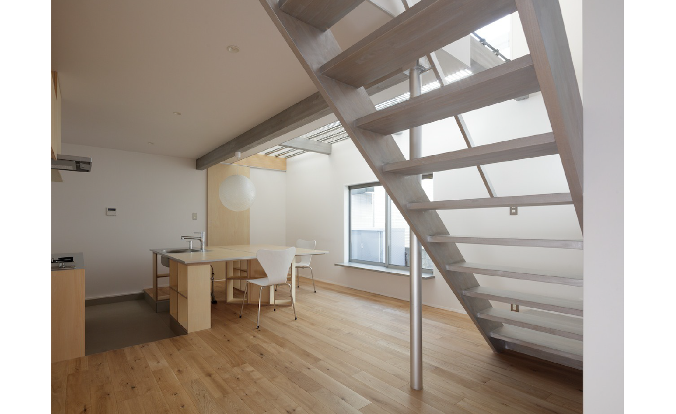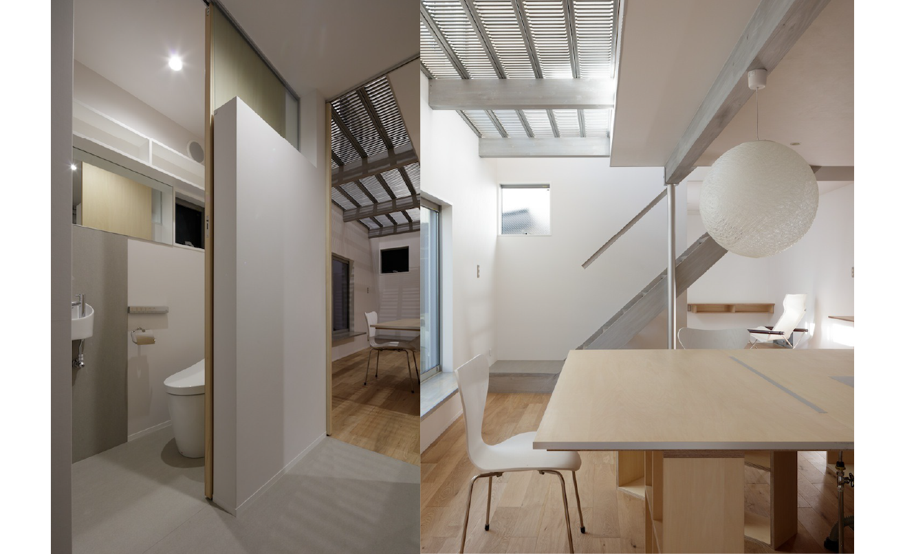 素材の選択や仕上げの方法はコスト削減を目的としながらも、それ自体が空間の質を下げることはありません。むしろ制約の中での判断が、建築としての完成度を引き上げています。派手な素材に頼らず、操作の精度で魅せる ── その姿勢がこの住まいの静かな強さを形づくっています。