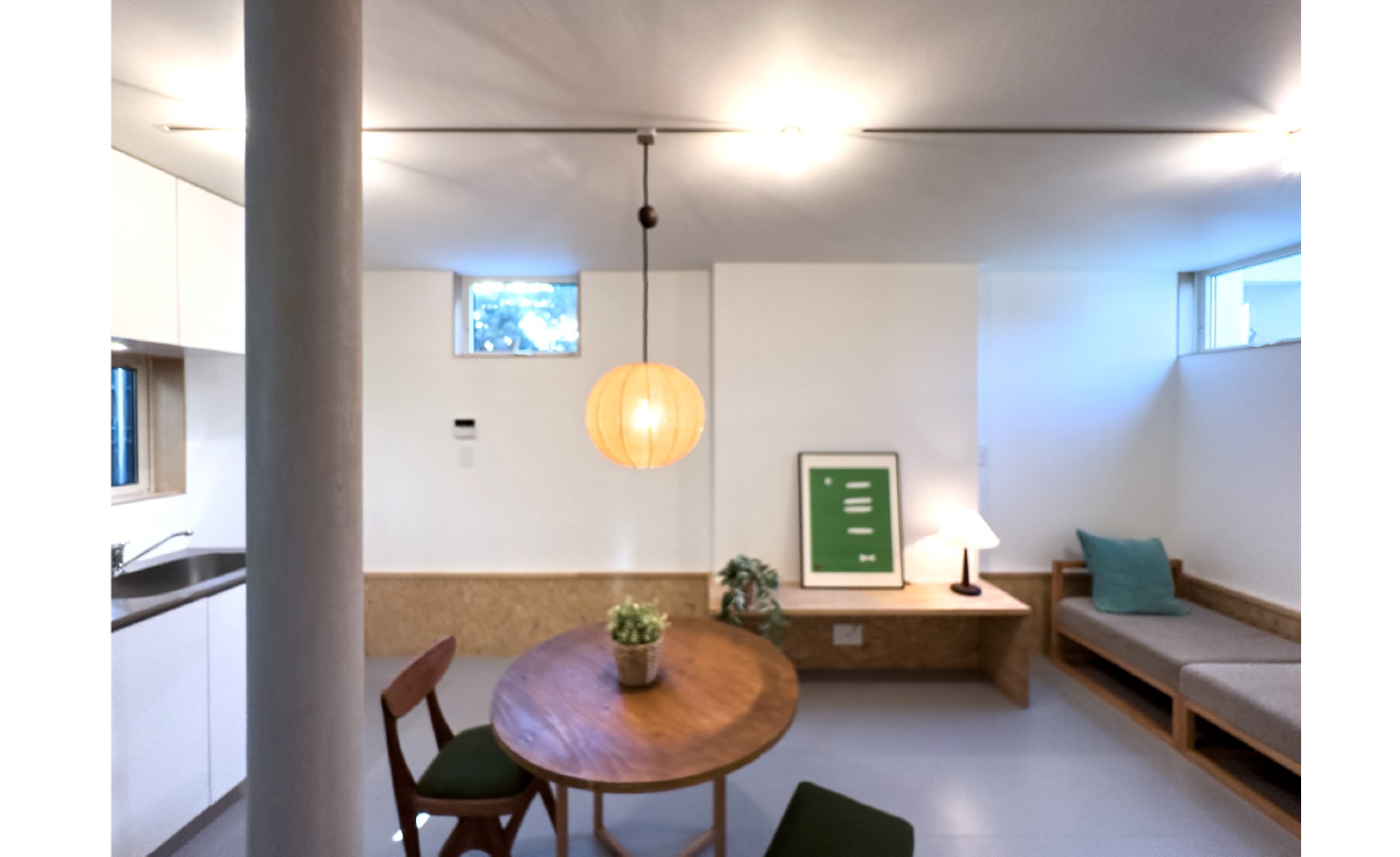 住むこと、貸すこと、働くこと、育てること。そのすべてを一つの住まいに収めながら、どこにも無理を残さない。この住宅は、都市と自然の距離がほどよい場所での暮らしに向き合った現実的で誠実な佇まいを備えています。