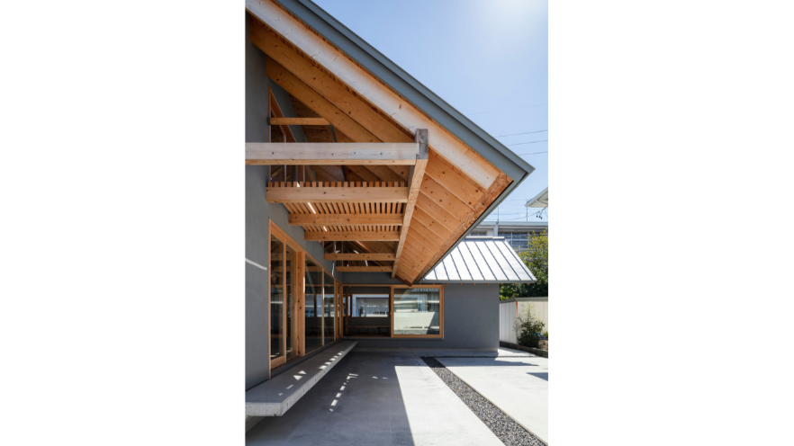 深い軒は外からの視線を遮るだけでなく、年々厳しさを増す夏の暑さへの対策にもなっています。夏の直射日光を和らげ、子どもたちが安心して外で過ごせる環境をつくりました。