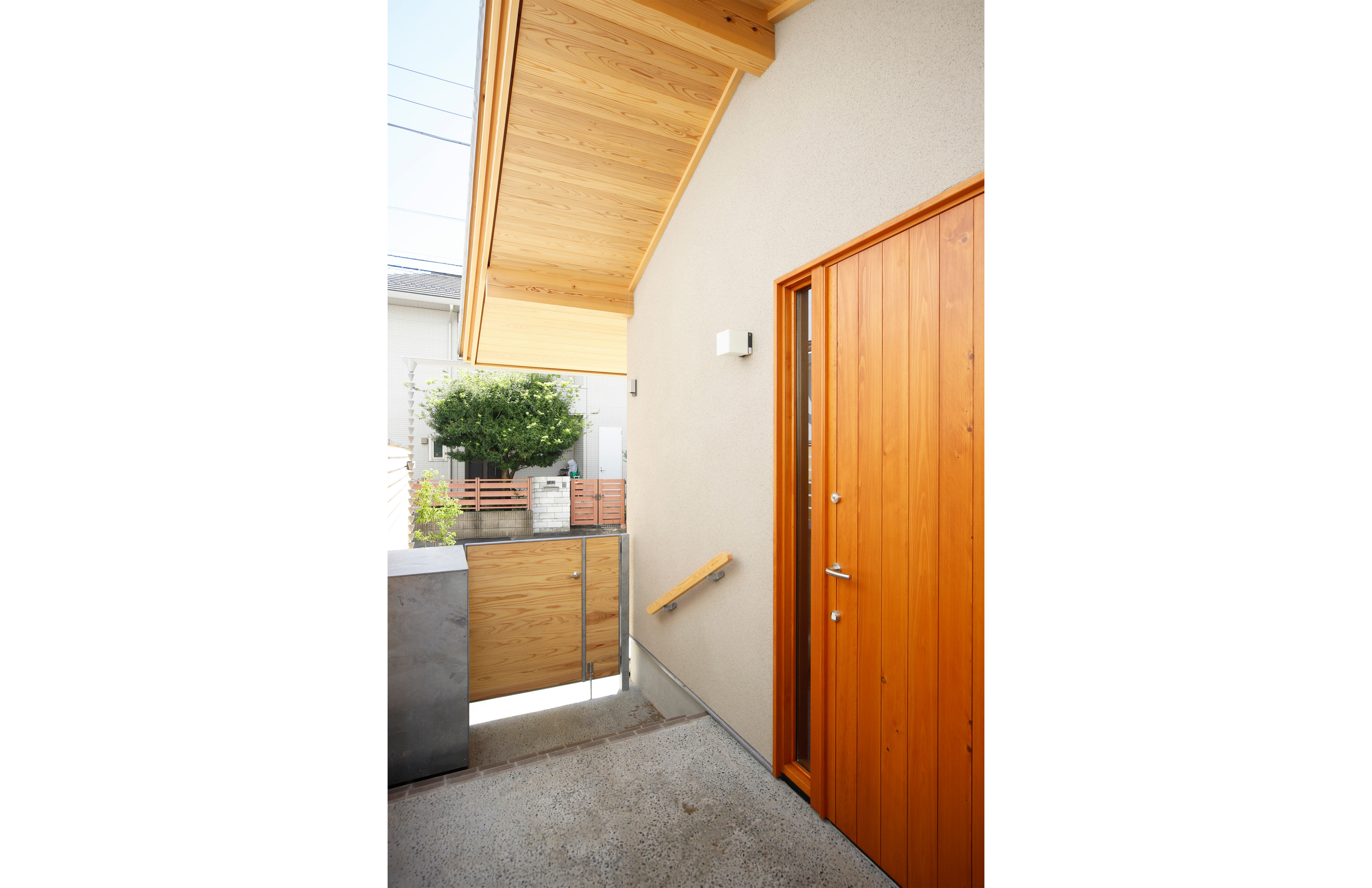お母様が将来、車椅子を使われることも考え、広々した玄関ドアに、車椅子をそのまま置けるほどの玄関スペース。