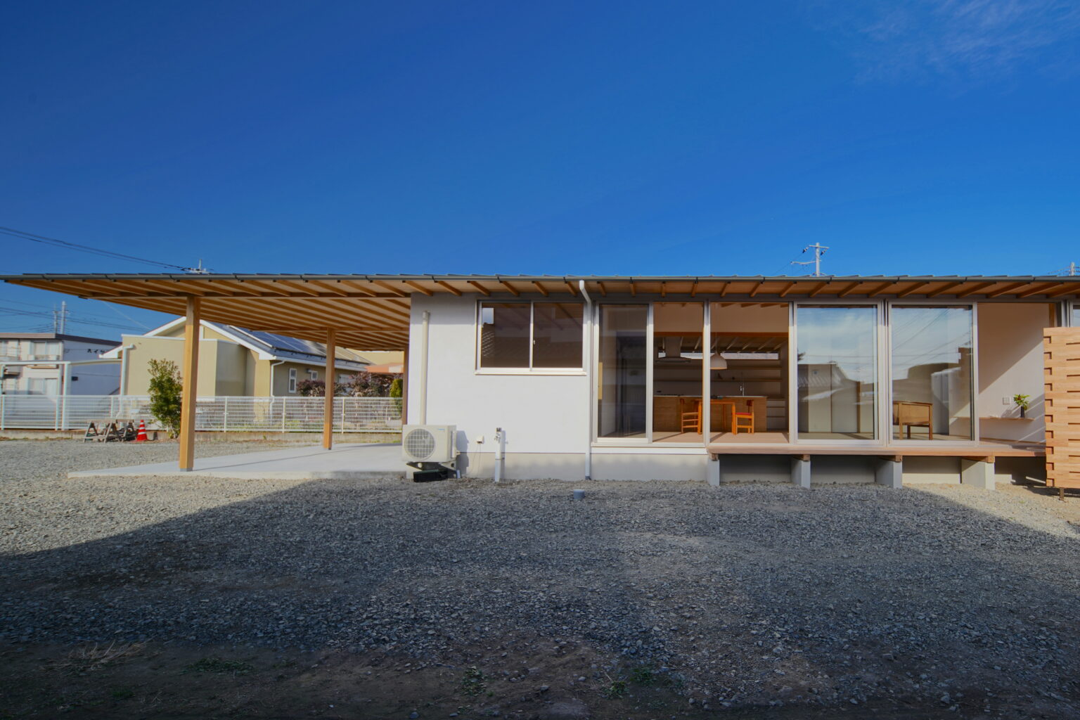 この住まいでは、住まいを守るように軒を大きく出し、屋根をしっかりと掛けることで、快適に暮らしながら、木造住宅を30年、50年と長く丈夫に住み継いでいただけます。