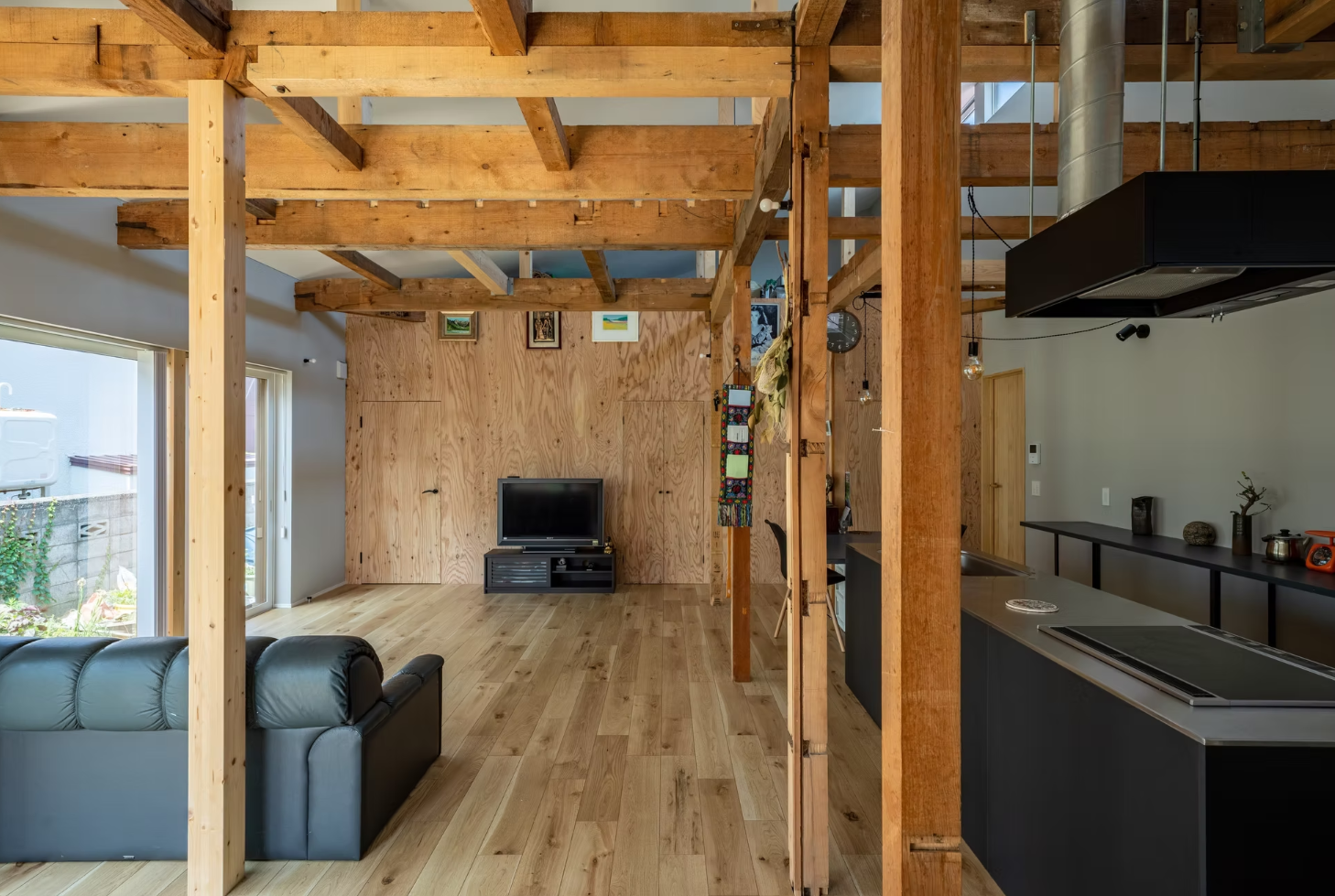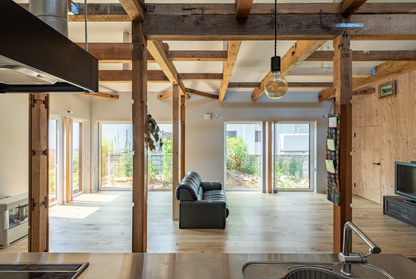梁を現しにすることで、空間を広く見せるだけでなく、以前の住まいの記憶を思い起こしてくれます。そして、暮らしの起点となる場所として受け継がれていきます。