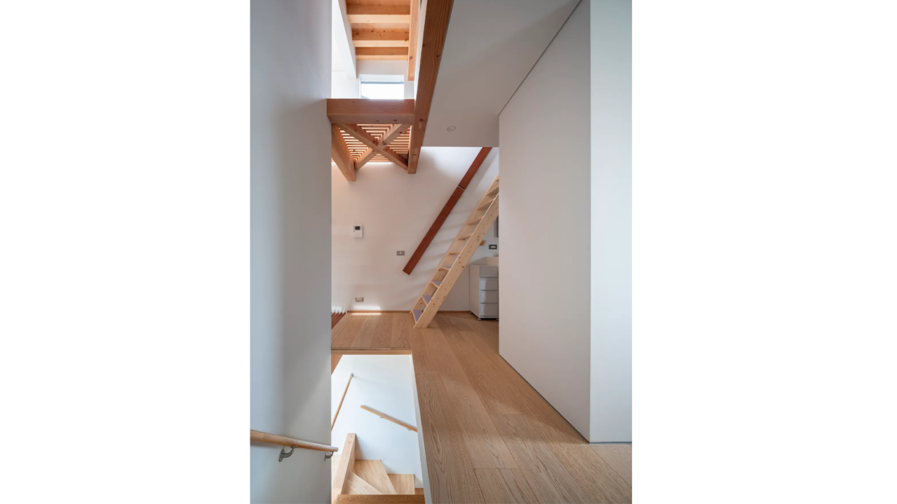 光を反射する白の内装に合わせて、床や天井、家具には木を多用。白の印象が強くなりすぎないように、オレンジがかった木の自然な温かみをプラスすることで、やさしく落ち着いた雰囲気をつくります。