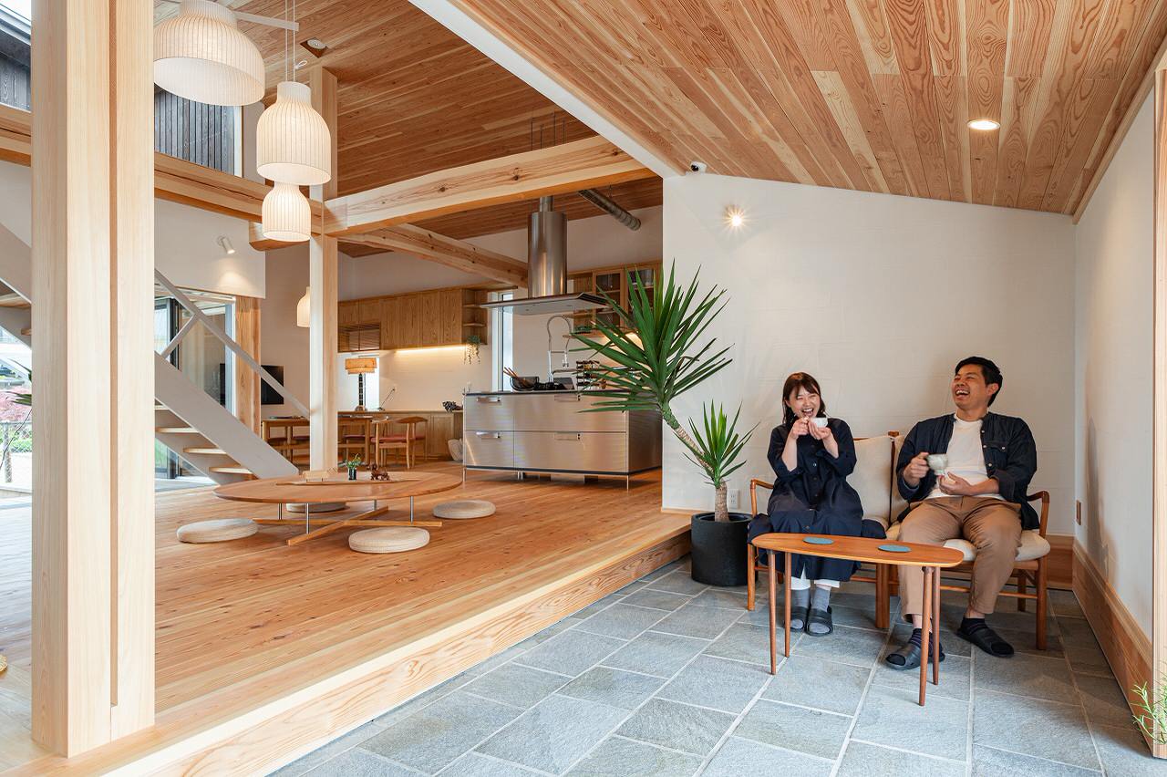 「土間」室内にいながらも土足でいられる空間。