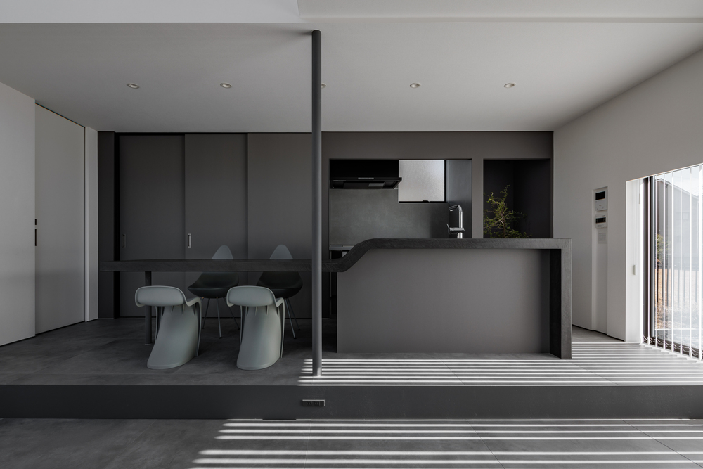 例えば、キッチンカウンターにはアールのデザインを施し、リビングの柱はまるく、階段では登り口を緩やかな螺旋のデザインとしました。