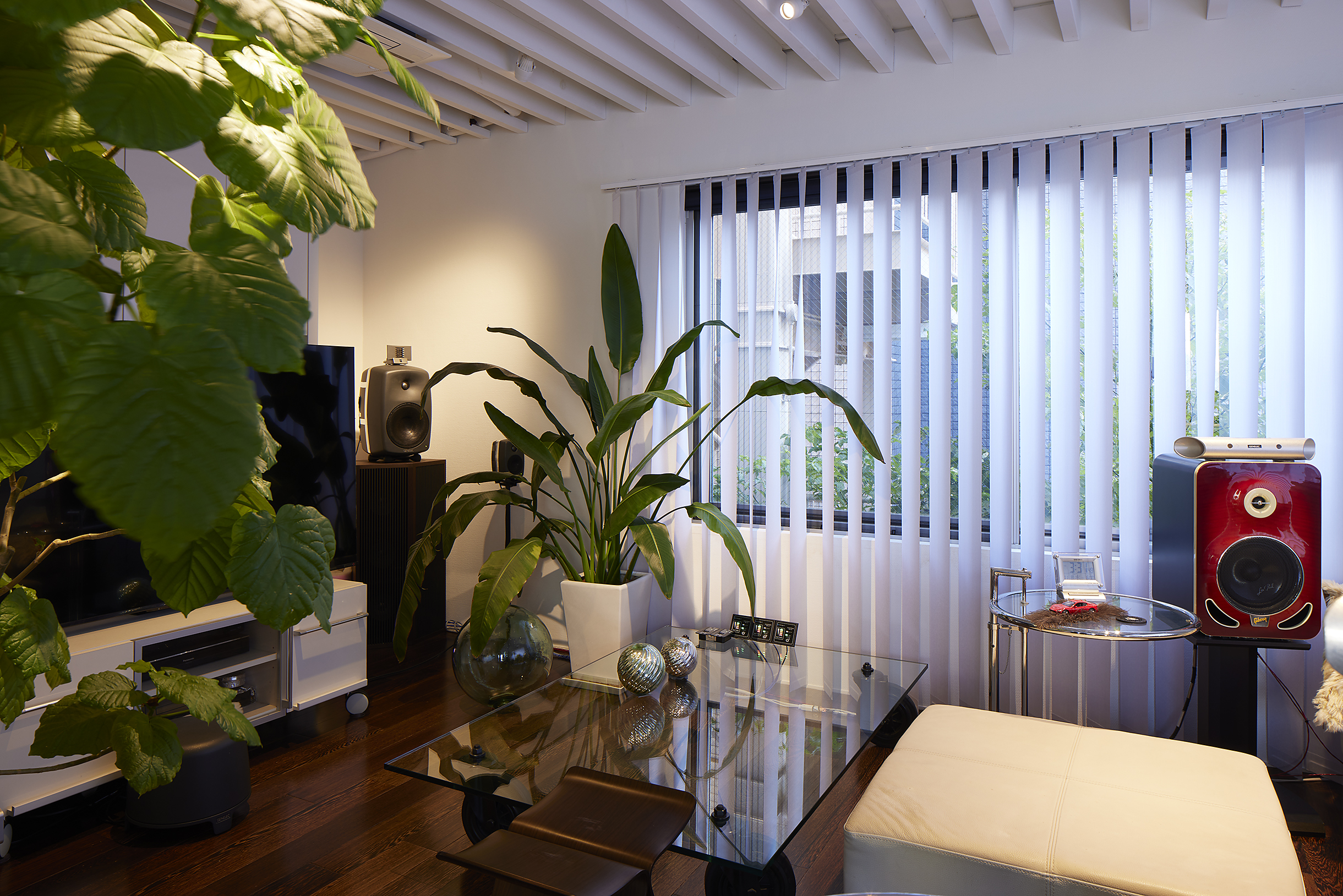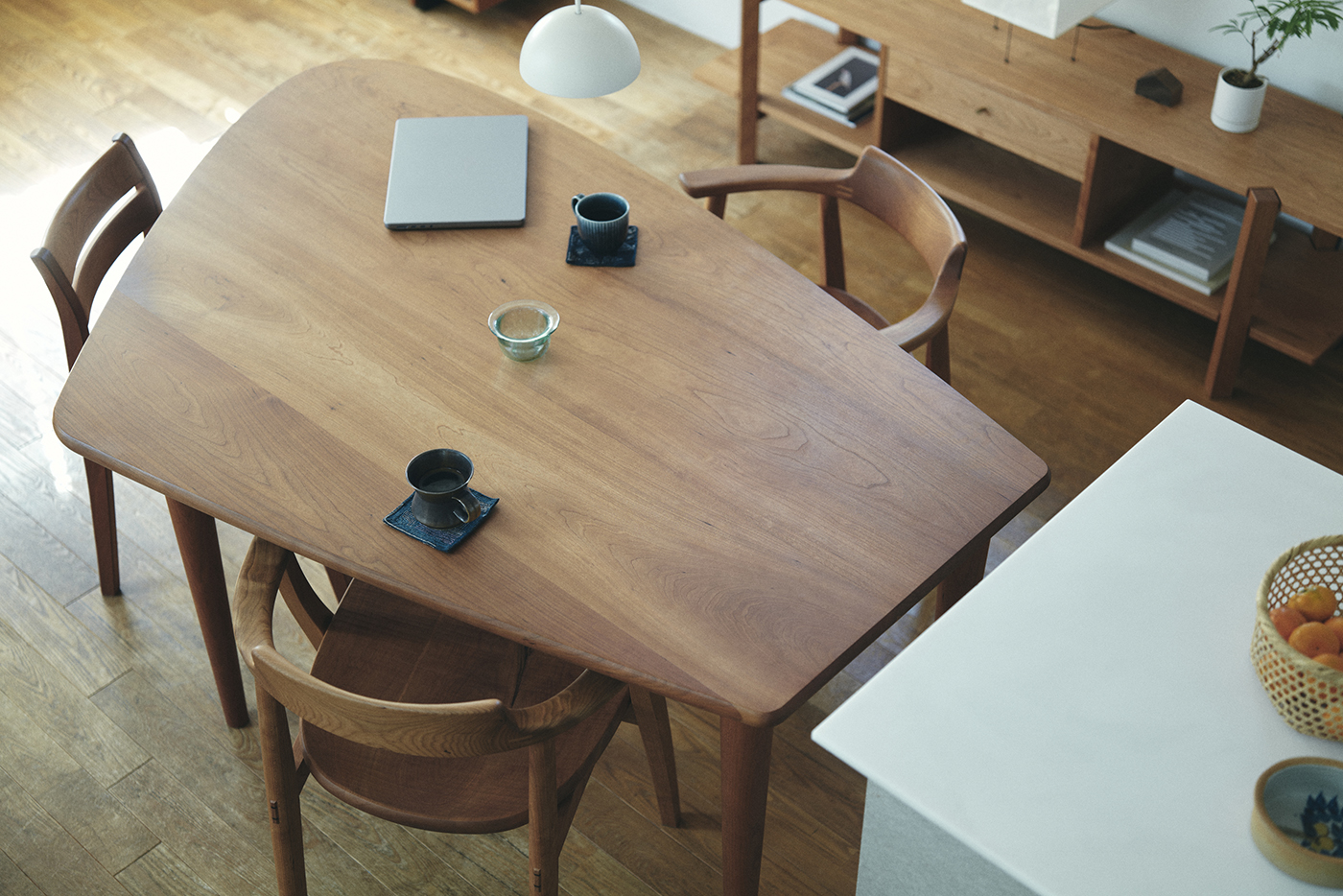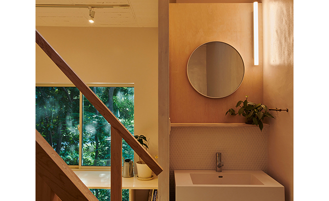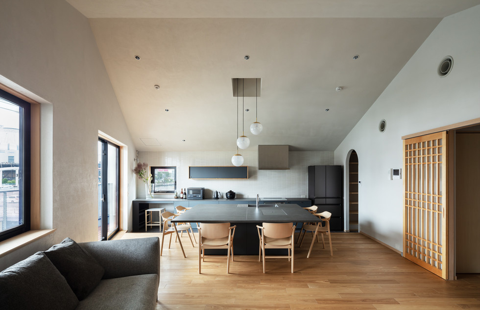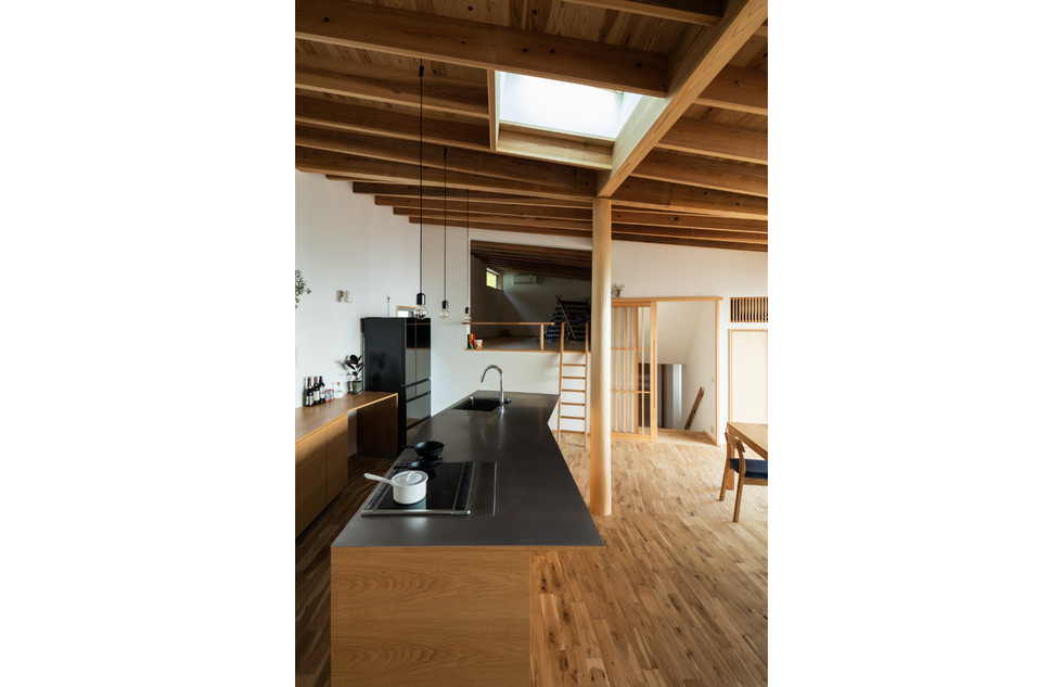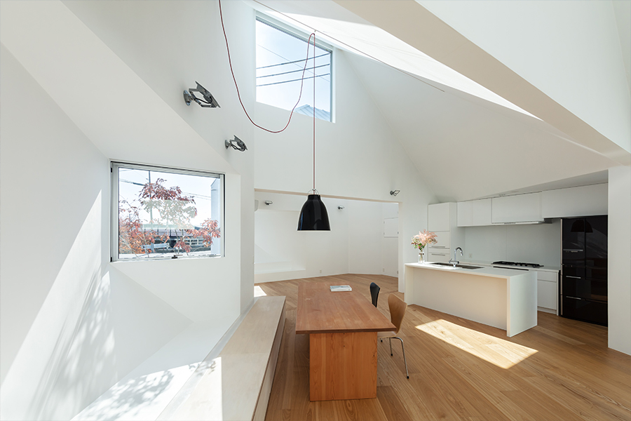 この工夫により頭上まですっきりと開けた美しいLDK空間が生まれました。