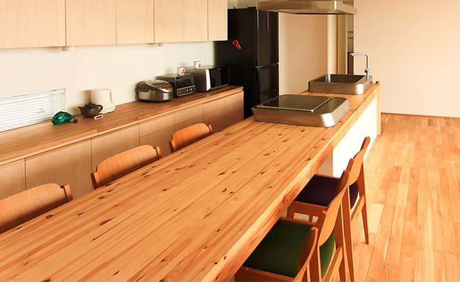 気になる性能面ですが、IHだとガスコンロのように大きな空気の対流が生まれないので、高いところにあるレンジフードよりも近くで吸い込むほうが効率よく排気できます。特に、ここは別荘なので料理を毎日ガンガンするぞ、というような環境ではなく十分な性能です。もちろん一般の住宅でも問題なく採用できますが、料理する回数や内容によっては、フィルターの交換回数などが別荘よりは増える可能性があります。