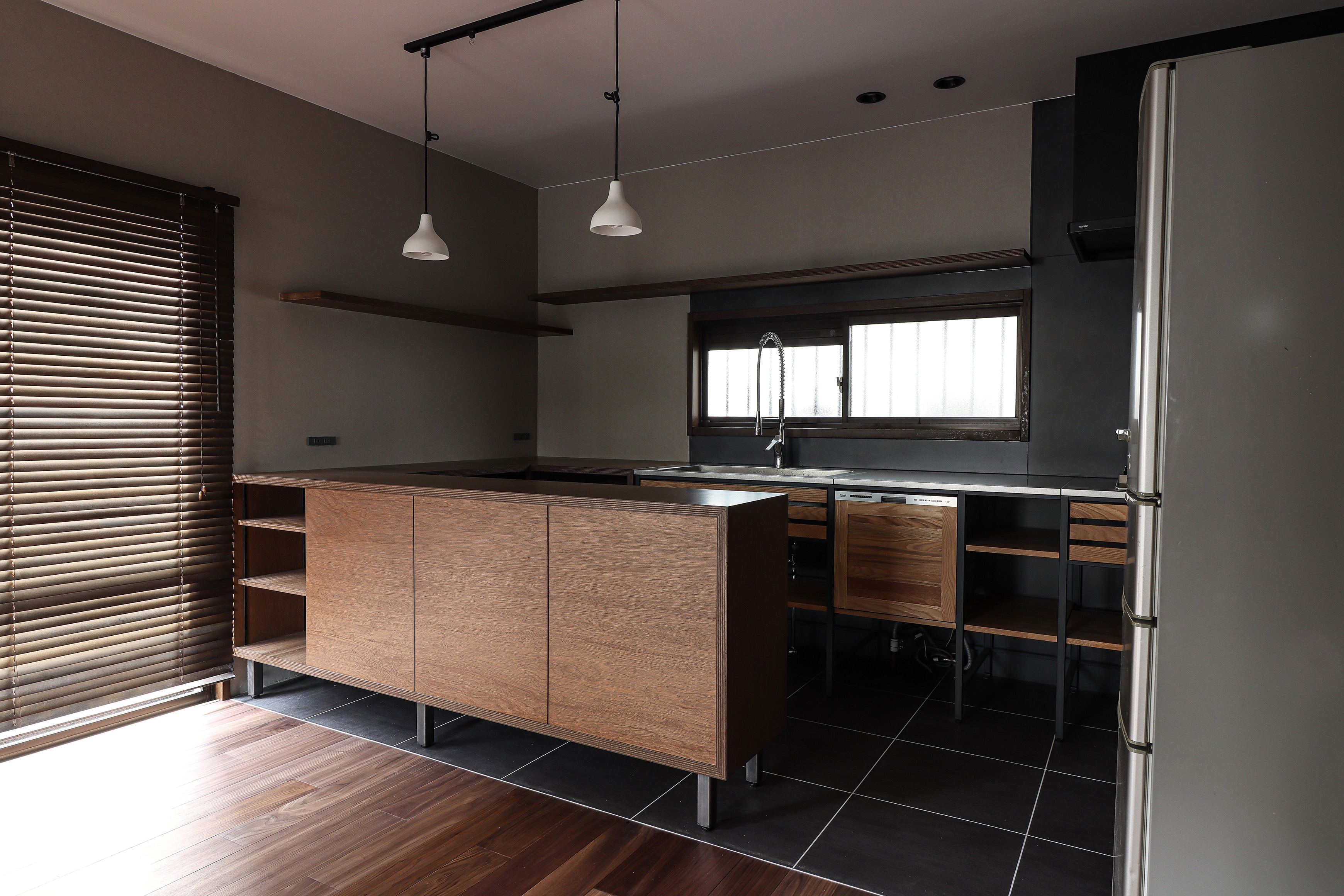 また、カウンターをリビングのフローリングの色に合わせて塗装することで、視覚的な広さを持たせながら、空間の統一感も大切にしています。