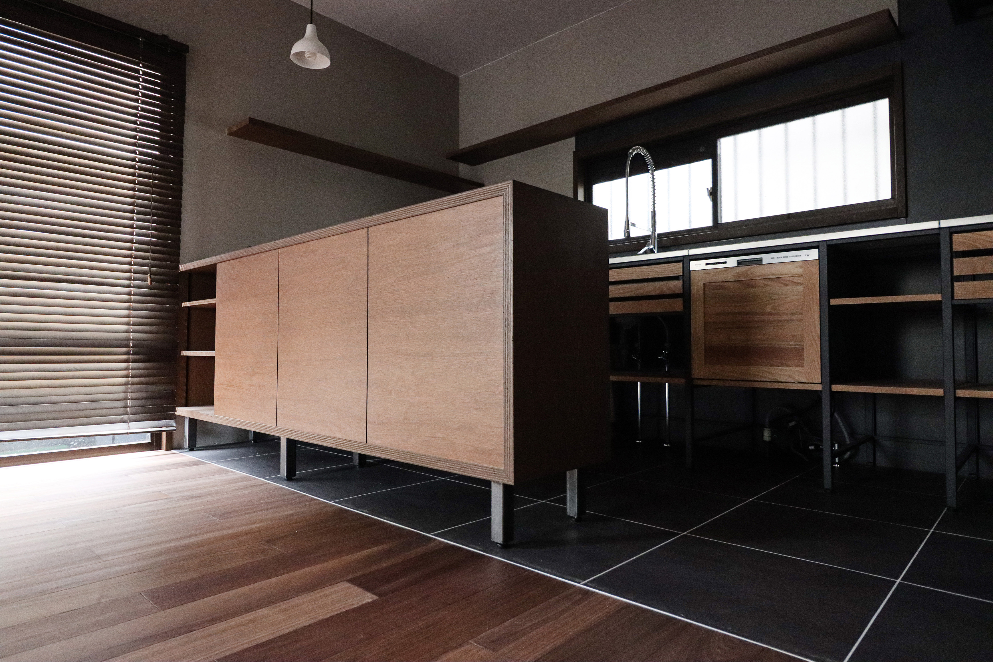 リフォーム前の元々のキッチンが壁付けのキッチンだったため、ダイニングスペースとの仕切りを兼ねた収納カウンターを作成しました。