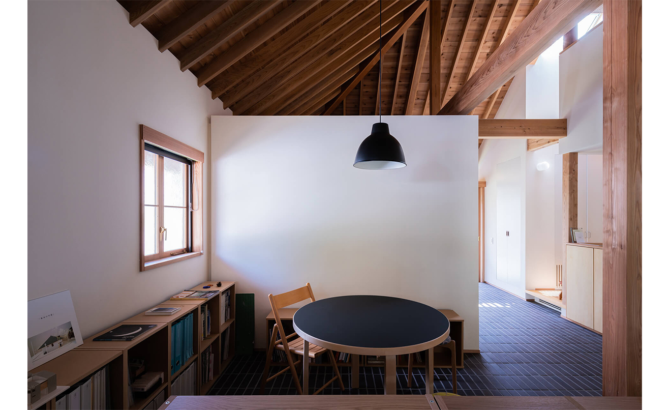 またこの土間にはワークスペースが連続して設けられていて、オープンでありながら、空間を分節する機能も持たせています。