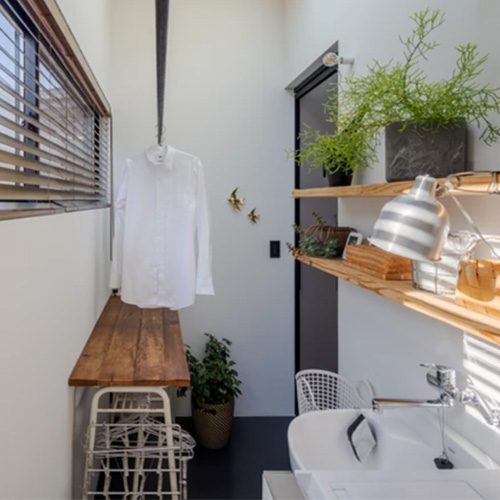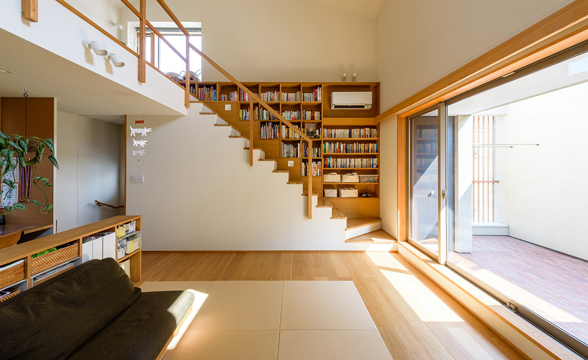 例えば絵や写真を壁にかけられるように白い壁面を多く確保するため、造作の収納を天井までではなくカウンターの高さにし、壁面とカウンターの上に飾る場を設けています。もちろん収納量が犠牲にならないように床下収納を設けるなど、暮らしにくくならない工夫も同時に行っています。写真の『江古田の家』では小上がりの畳スペースの下を収納とすることで収納量を補っています。