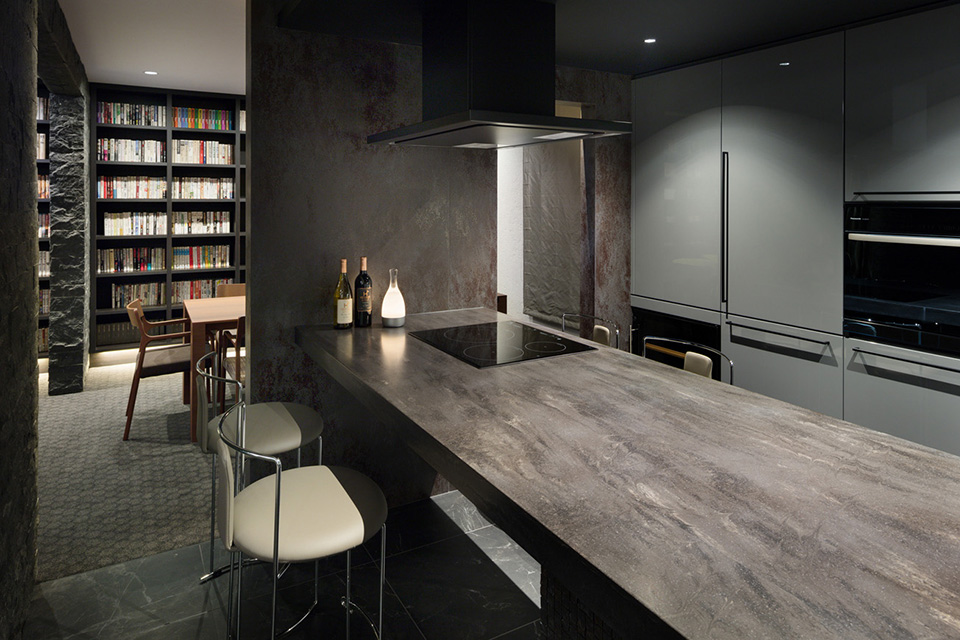 リノベーションならではの制約がある中で、「自宅で匂いを気にすることなく鉄板焼きがしたい」という希望を叶えるため遊び心が詰まったキッチンになっています。