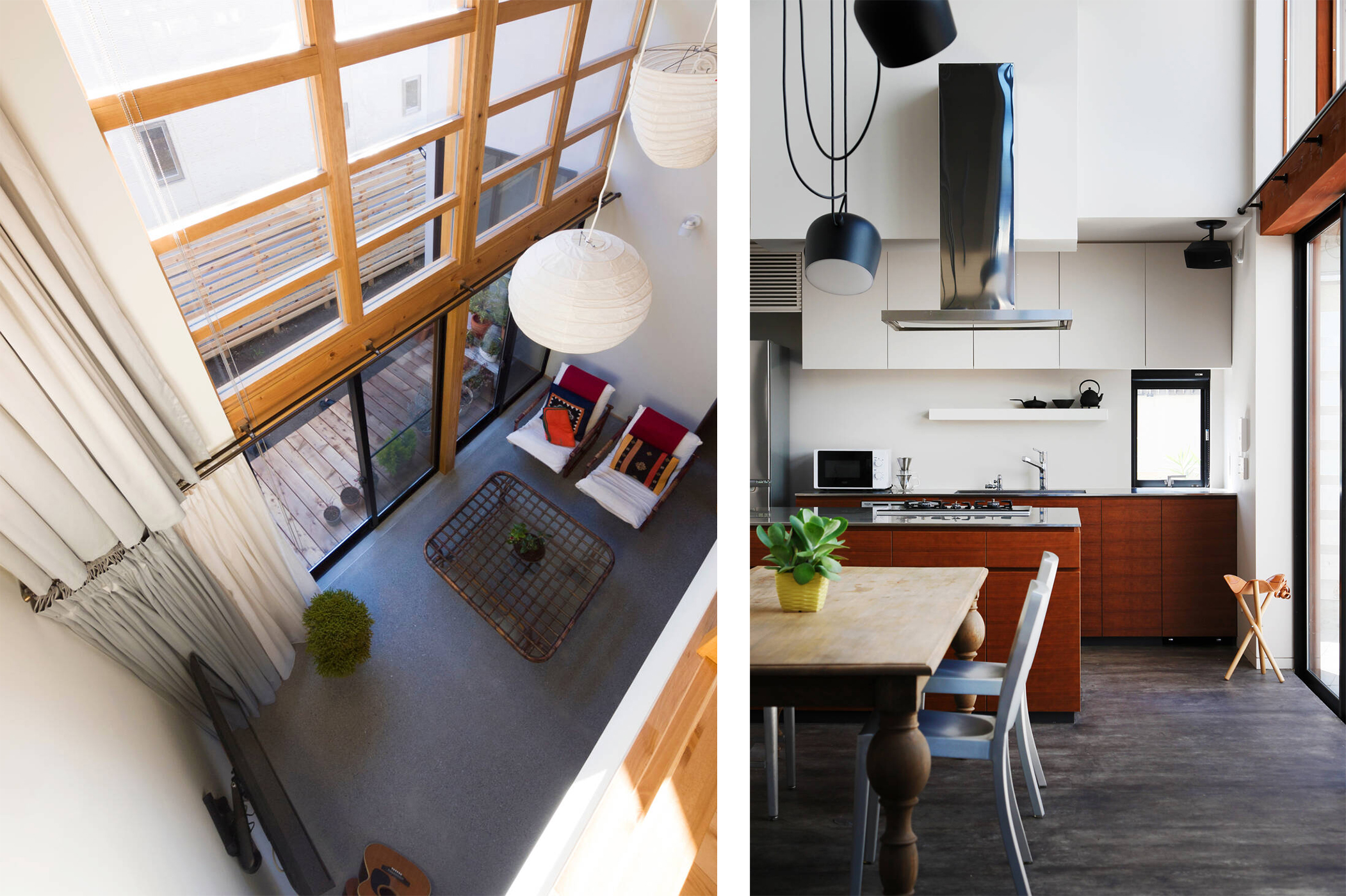 【右】海辺の立地で砂が飛んできがちだが、コンクリート基礎の床なら清掃もしやすい