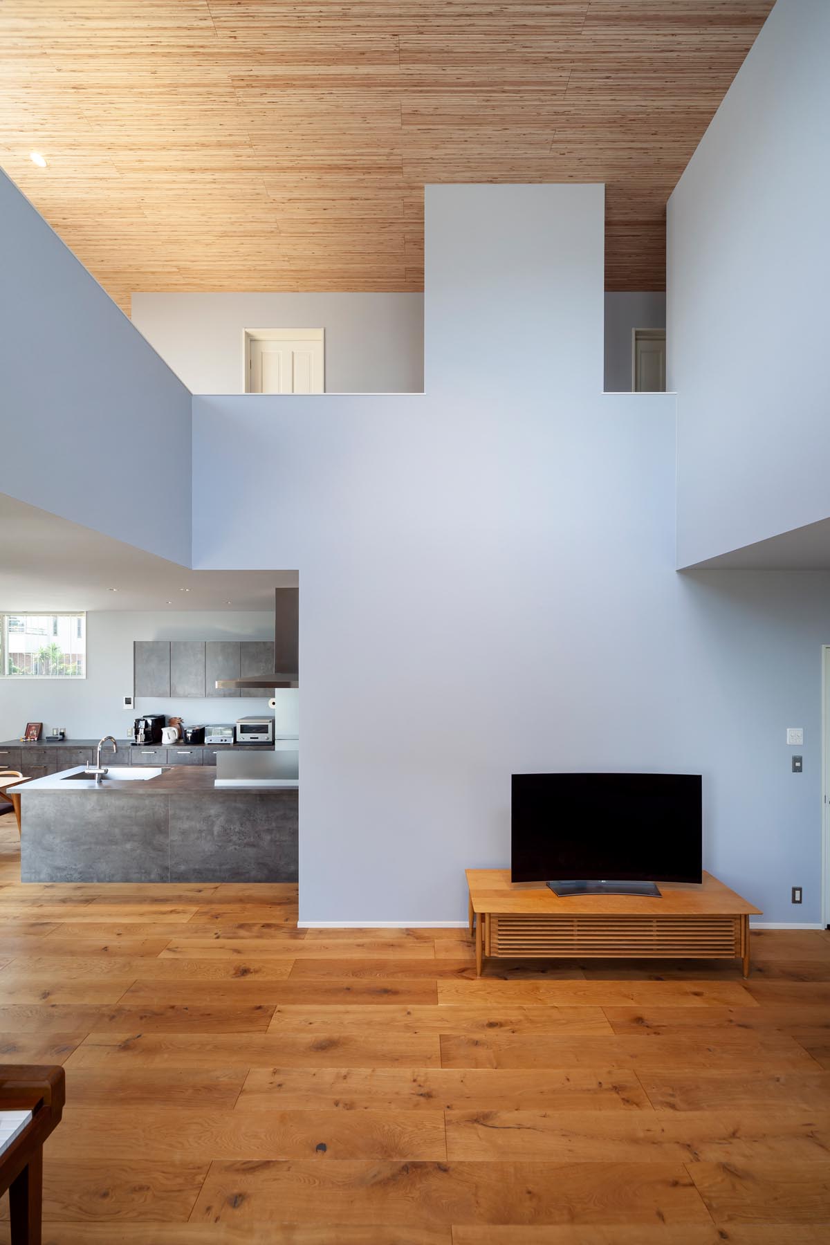 グラフテクトのキッチンは、海外製ならではのスタイリッシュさが光るデザインなので、空間にキッチンが良く映え、空間自体も良く見えます。無駄がないシンプルなデザインに、エイジングしたコンクリートのような洗練された面材がキッチン全体のアクセントとなります。キッチンは傷がつきにくく、シンクに無駄な凹凸が無いので掃除がしやすく使いやすいので、色、雰囲気、機能面ともにとても気に入って生活されています。