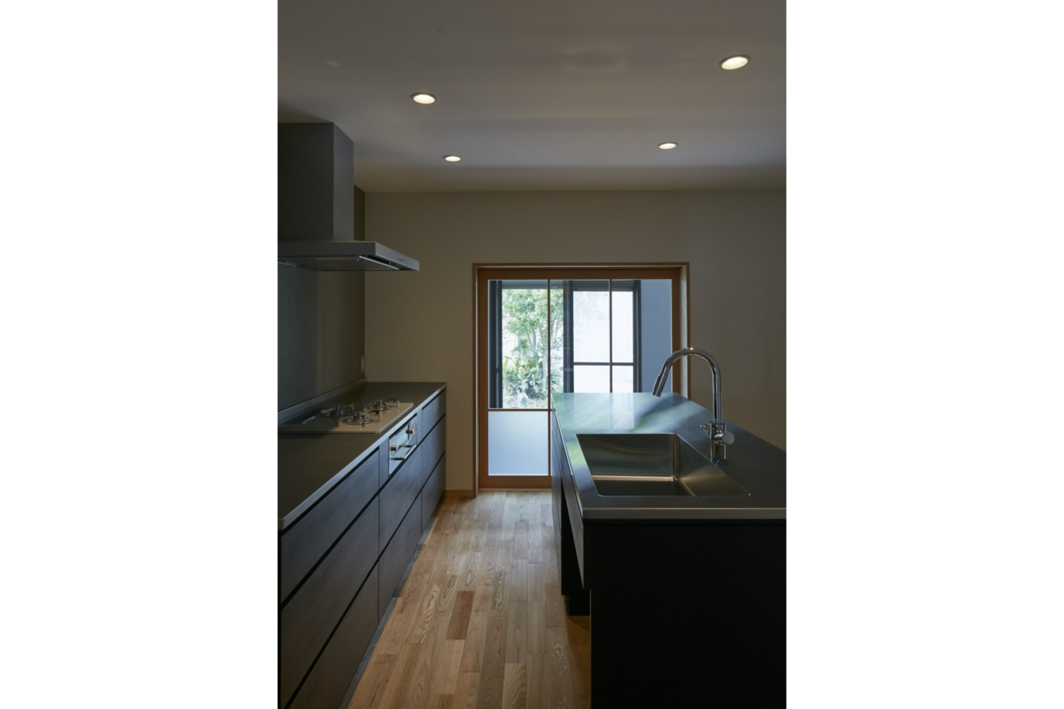 陶器の文化が残る歴史ある街の瓦屋根が美しい平屋の住宅。その雰囲気を大切にした住宅のキッチンです。