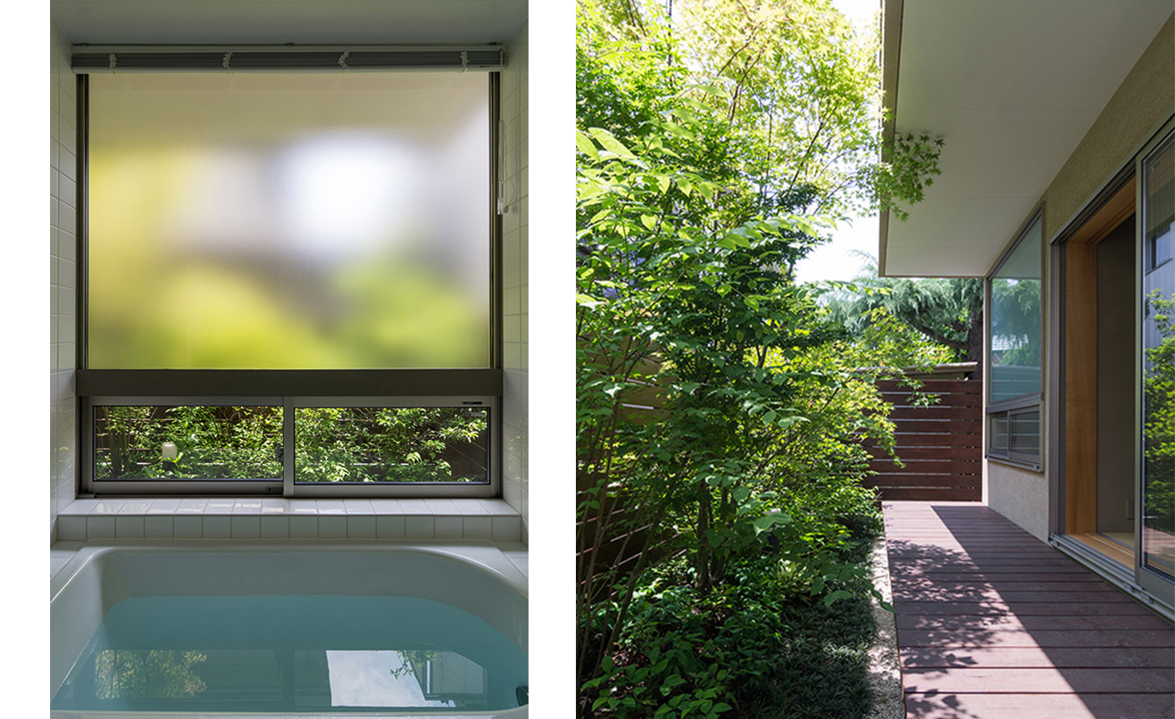 1階の和室、浴室からも庭の緑が楽しめます。