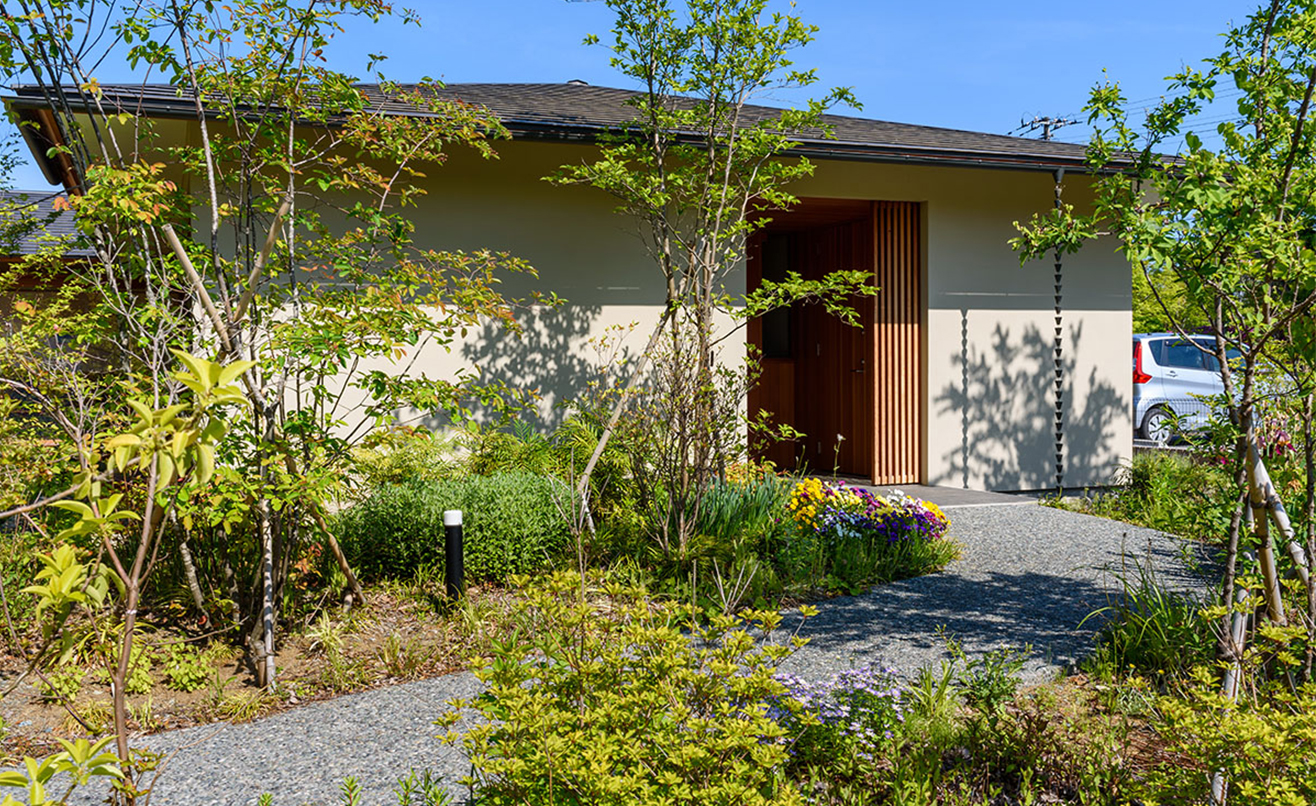 庭と建物の結びつきを深めることで、来る方の心も安らぐ場所となりました。