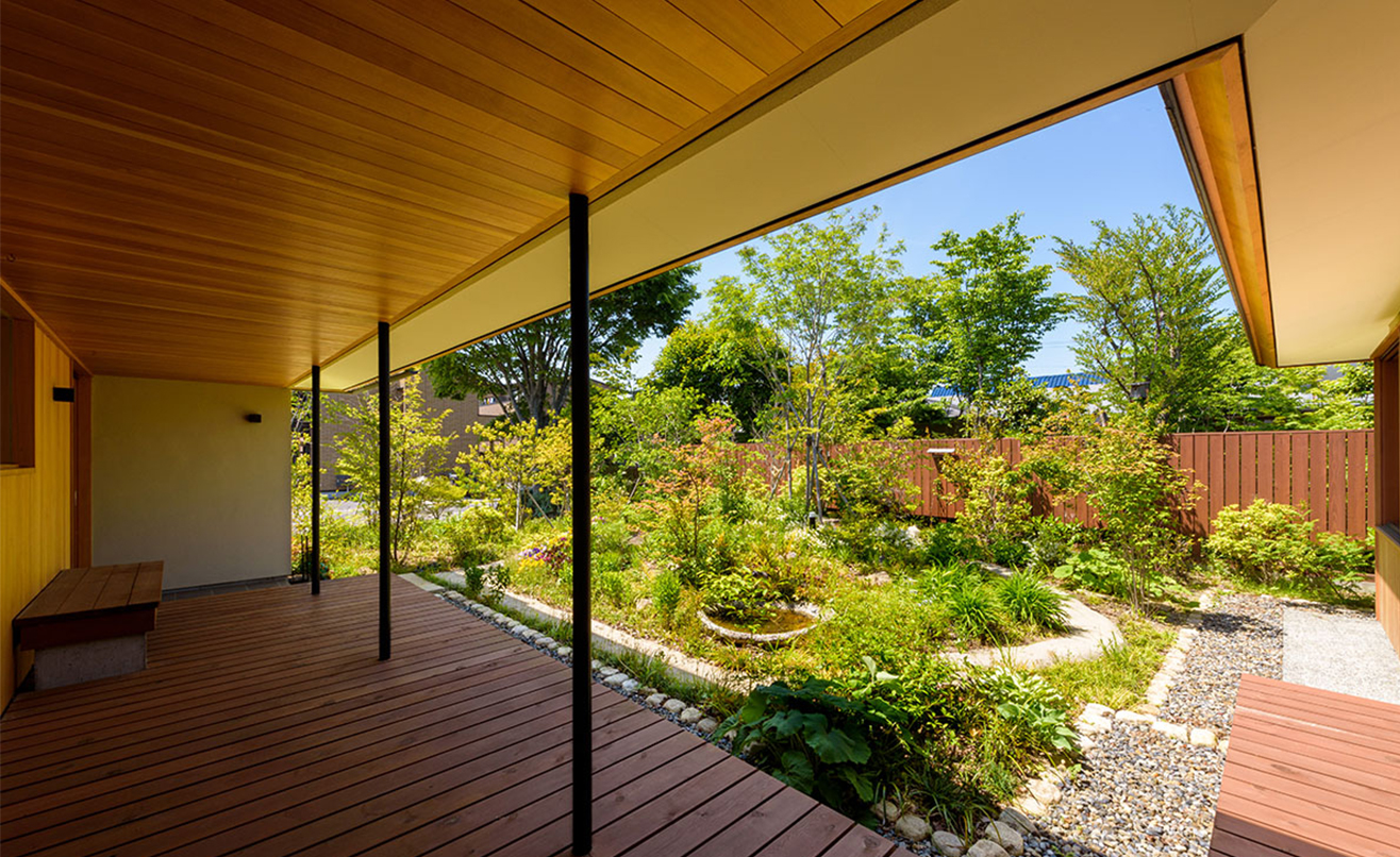 そこで施主の住まいの緑とつながる庭を、とても広くつくりました。