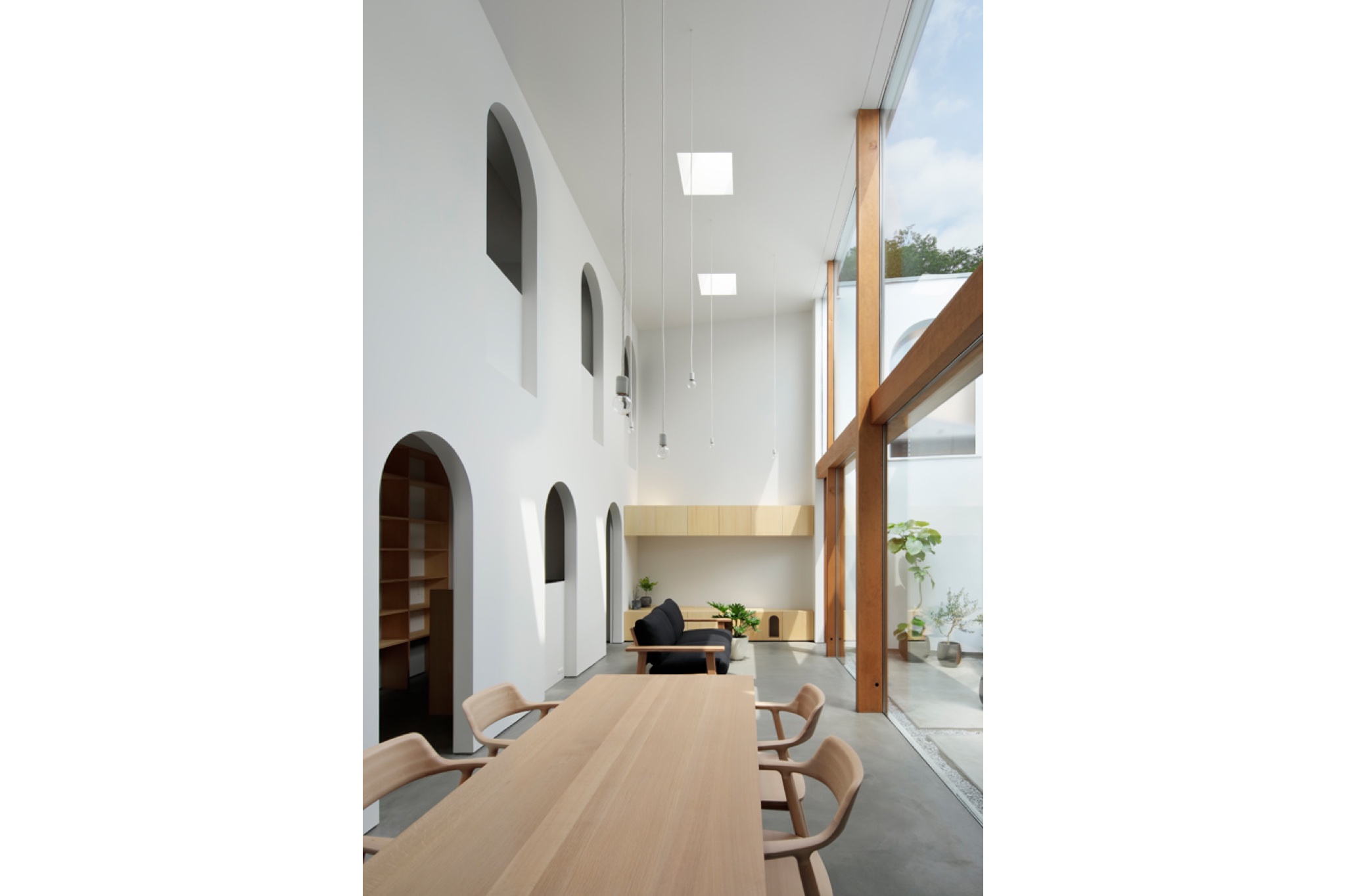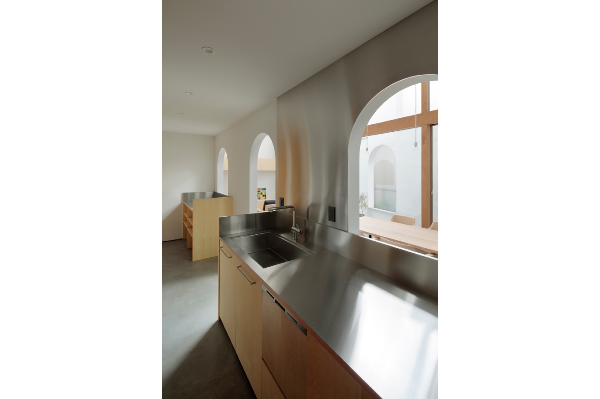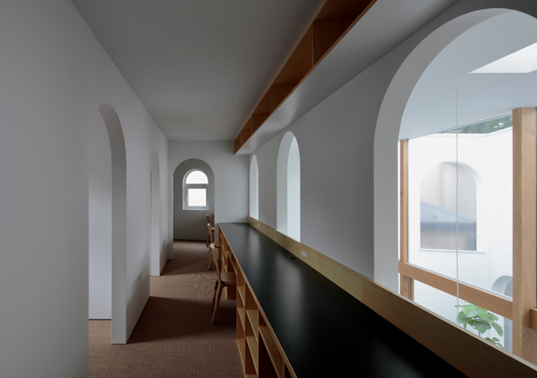 この“アーチ“は、家の中に散りばめられており、雪のかまくらの入り口のような非日常感や、アーチがつらなることで、「どこまでが部屋なのか?」、「どこまでが敷地なのか?」とわからなくなるようなワクワク感を感じさせます。