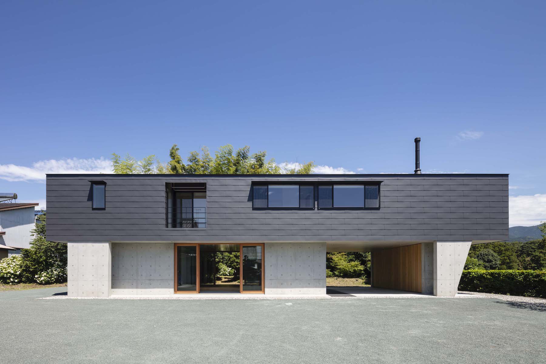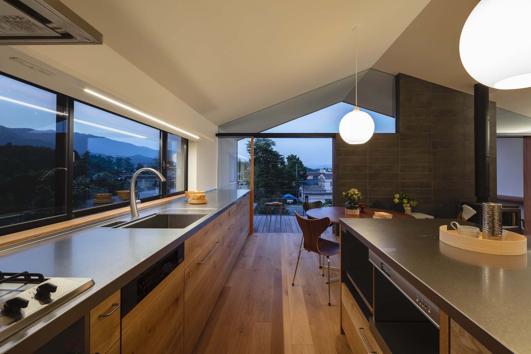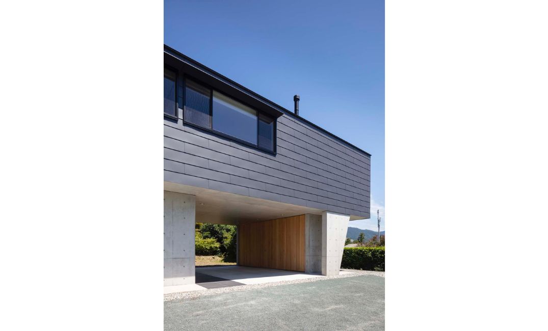 『新城の住宅』では薪ストーブを採用しています。薪ストーブは燃焼効率を上げるため、外気を取り込む必要があります。そのための給気口は通常ストーブの背面に設置されることが多いのですが、今回は室内で配管が見えたり、背面にあたるバルコニーで給気口が目立って美観を損ねることを避けるため、ストーブの下に給気口の配管を設置しました。リビングの下がピロティなので、そこにある倉庫の中に給気口の配管をおろしていて外からは見えない状態になっています。