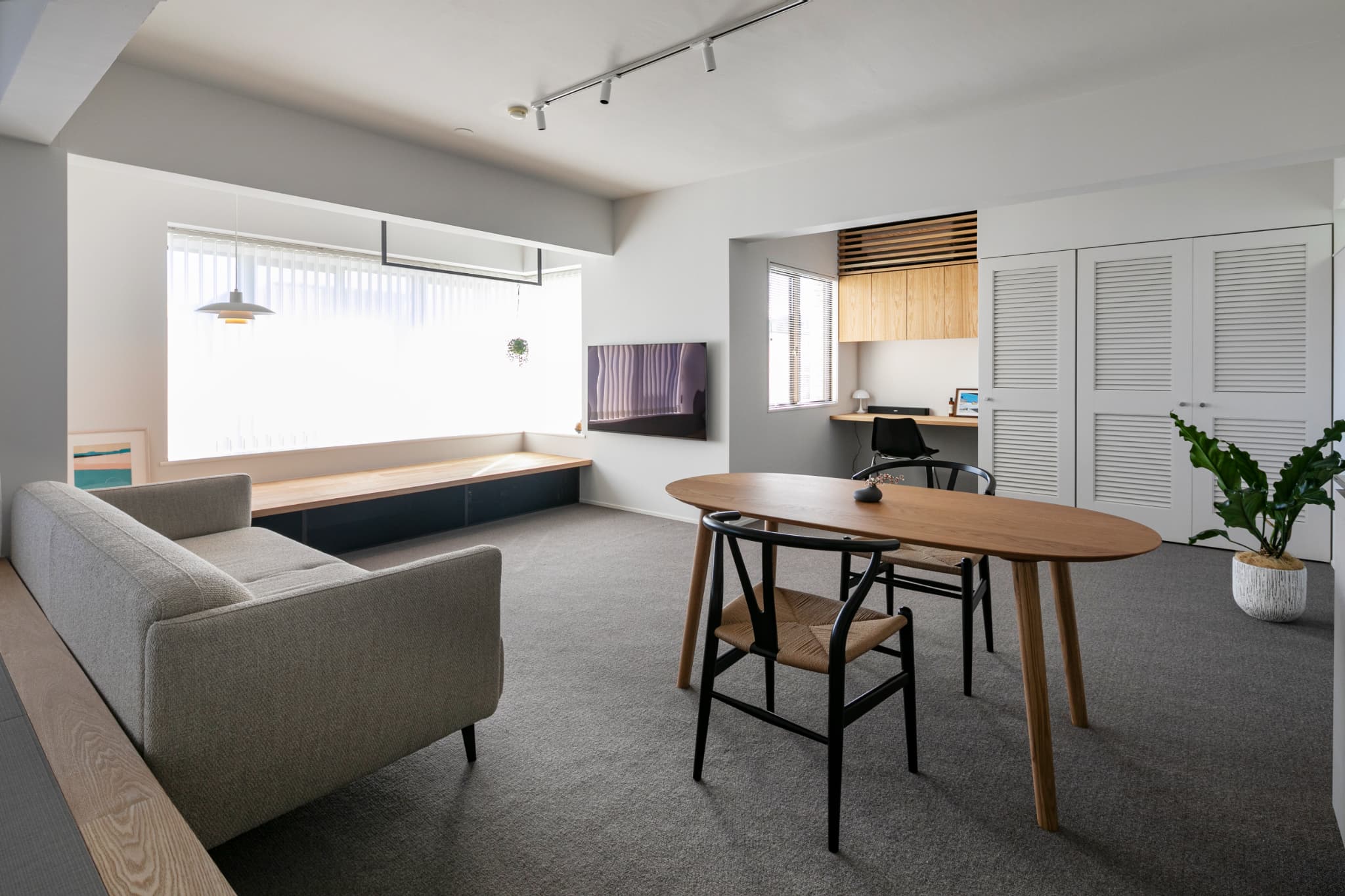 家の中で充実させたい空間というのは人それぞれだと思います。この住宅の施主の方はご夫婦ともにコーヒーがとても好きで、二人で一緒に楽しまれるなど共通の趣味でした。そこで、淹れるための道具や関連のものをまとめておいて楽しめるコーヒーカウンターを造ることにしました。専用スペースがあることで、気分の切り替えにもなり、家でも好きなコーヒーがある空間を楽しめます。カウンターの壁面には素材にコーヒー豆のリサイクル素材を使用した内装材を使用し、コーヒー好きのための空間になっています。