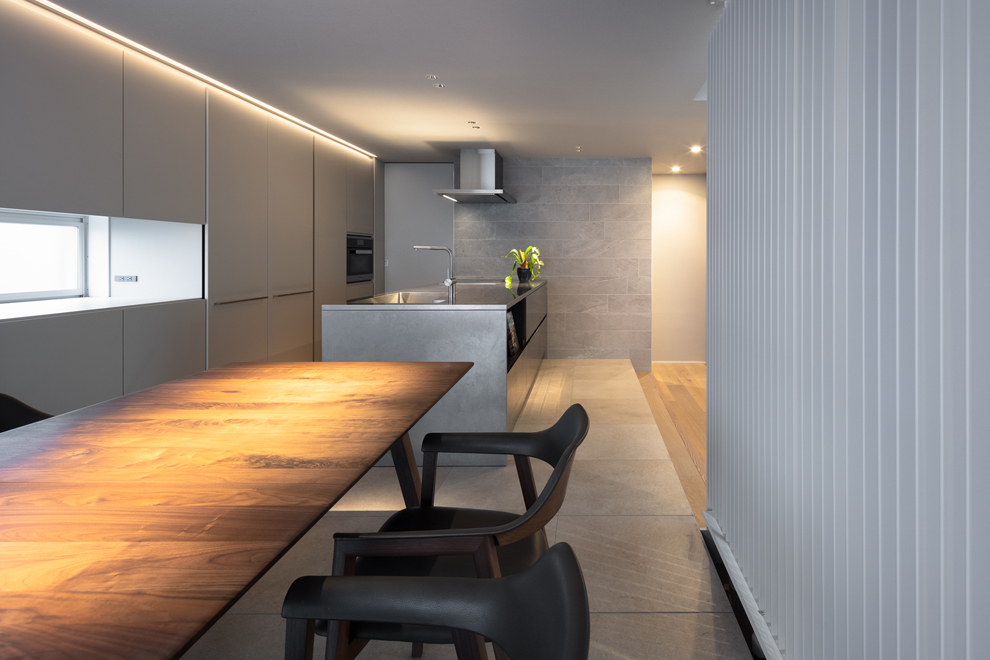 そこで際立つのがオープンキッチンです。シンク上に置かれがちな洗剤は、洗剤ポケットを設けることで「仕方がない」と諦めがちな細部にもこだわり、オープンキッチンのよさを最大限に生かしました。